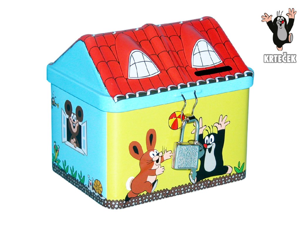 Plechová pokladnička s Krtečkem a jeho kamarády.
