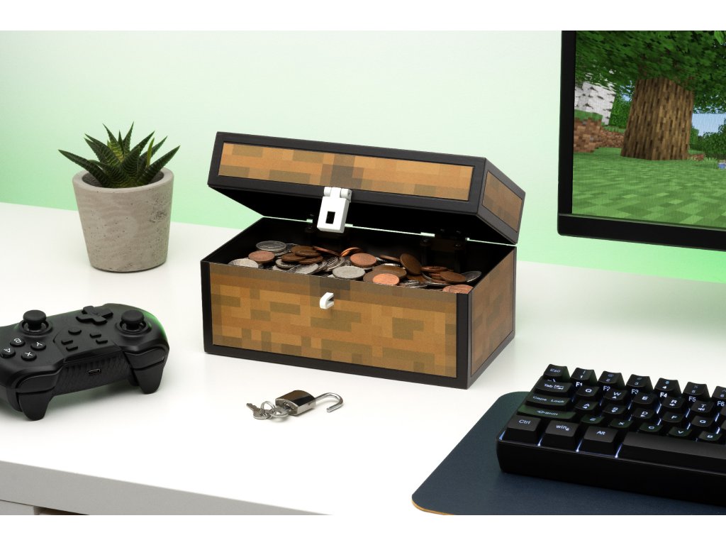 Plastová pokladnička Minecraft: 3D truhla (21 x 12 x 10 cm)