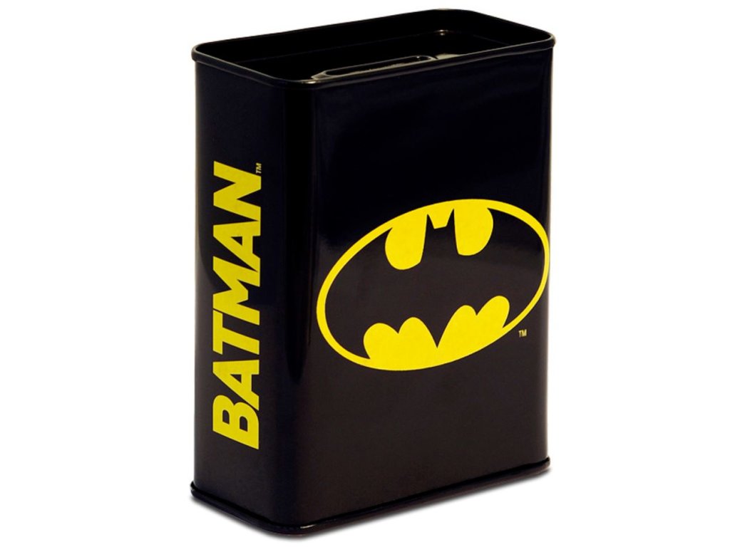 Plechová pokladnička vyvedena v motivu superhrdiny Batman od komiksové společnosti DC Comics. Ve vrchní části pokladničky je otvor na házení mincí.