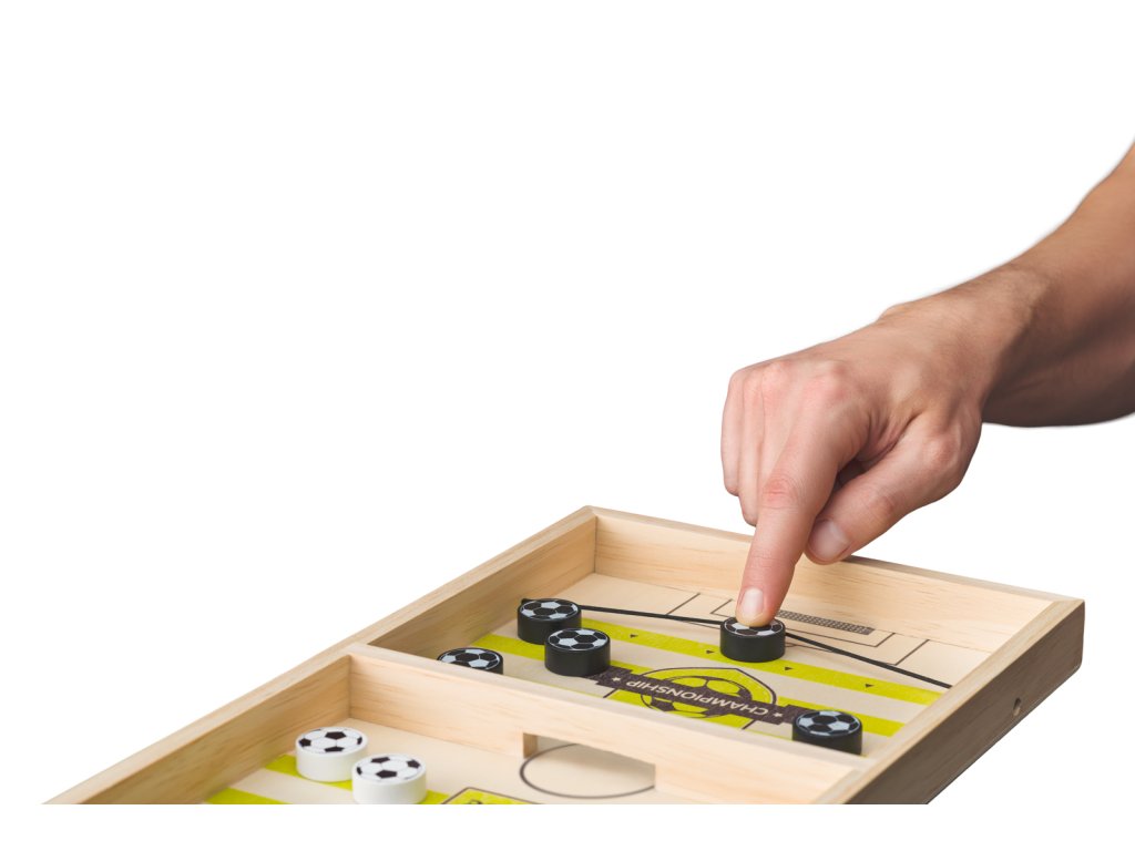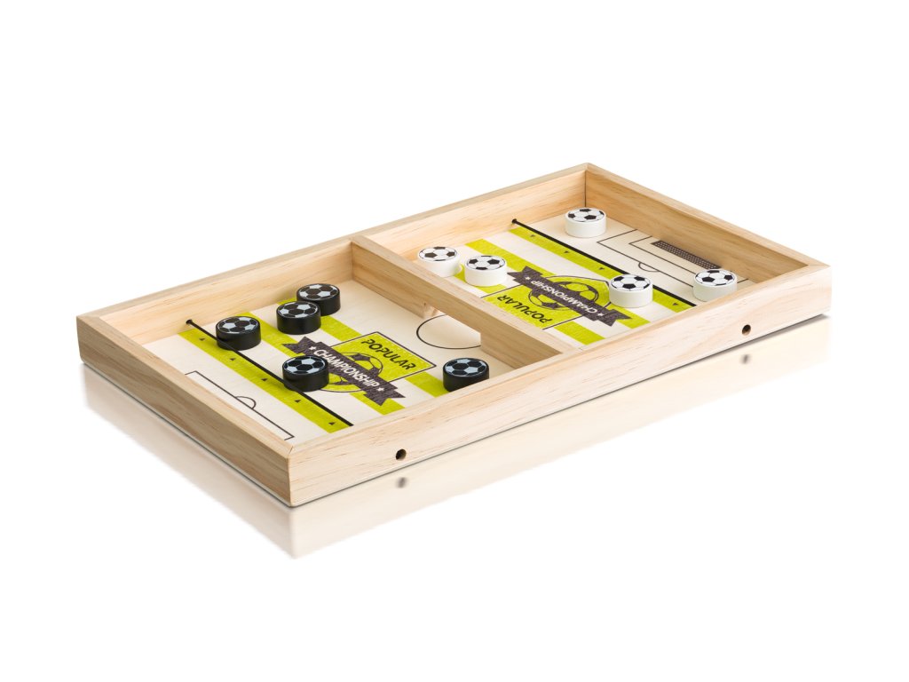 Skvělá stolní hra s neuvěřitelným nábojem. Základ tvoří hrací deska s gumičkami na obou stranách a žetony. Cílem hry je nastřílet všechny žetony ze své hrací plochy na hrací plochu protihráče a to otvorem v dřevěné přepážce. Problém je v tom, že soupeř se snaží o totéž! Chce to být rychlý, ale také přesný! | Věk: 3+ | Rozměr: 36 x 22 x 2,8 cm