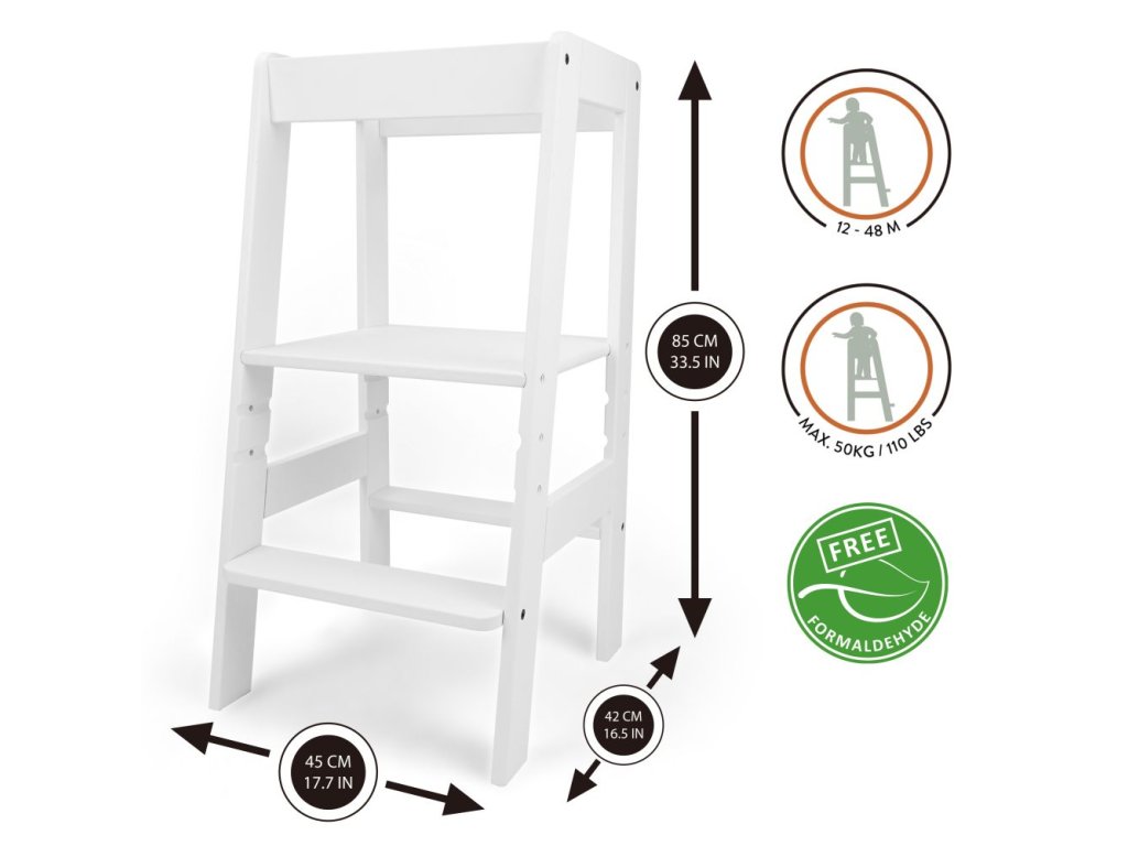 3. Dítě může vylézt na výukovou věž samostatně, schod od podlahy je ve výšce 20 cm, což pomáhá dítěti dostat se na věž