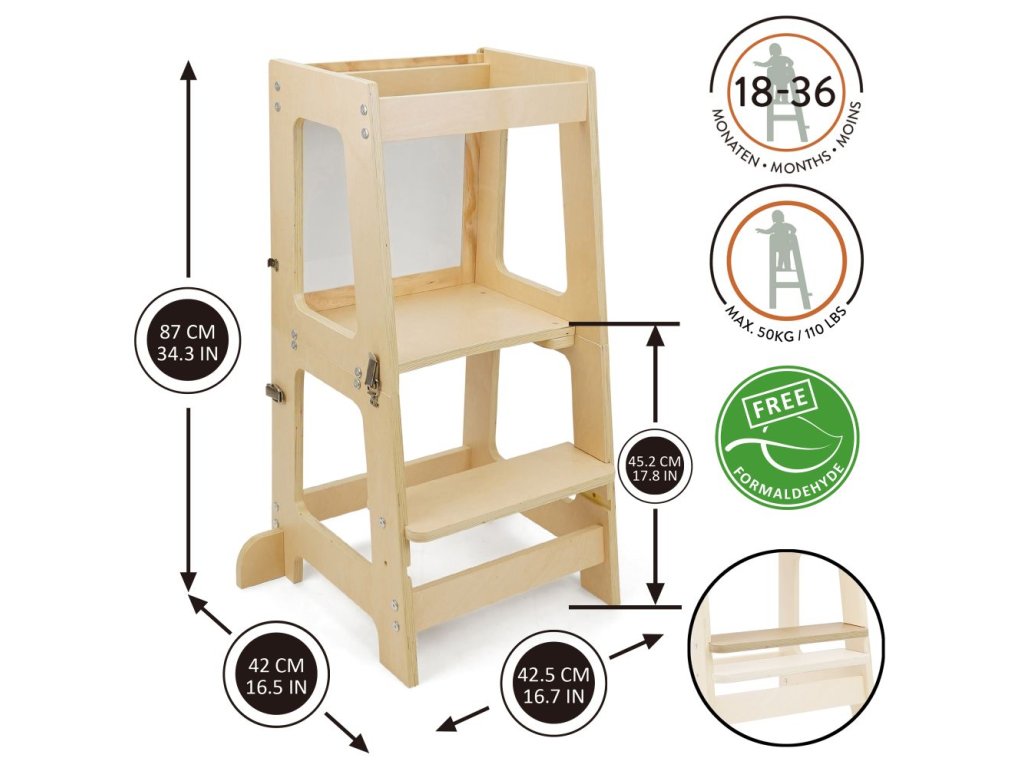 1. Věž je vyrobena z vysoce kvalitního a odolného překližkového materiálu, který se snadno sestavuje. Maximální nosnost do 50 kg.