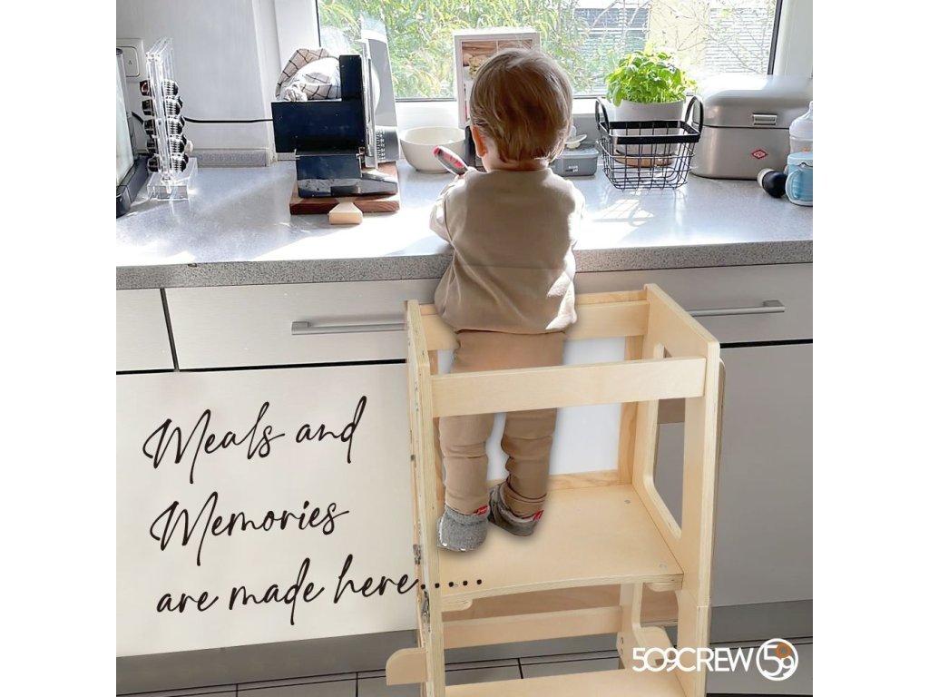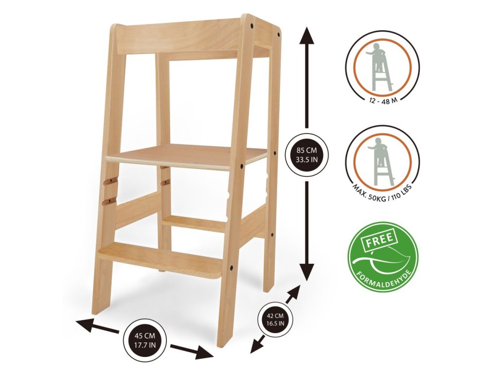 3. Dítě může vylézt na výukovou věž samostatně, schod od podlahy je ve výšce 20 cm, což pomáhá dítěti dostat se na věž
