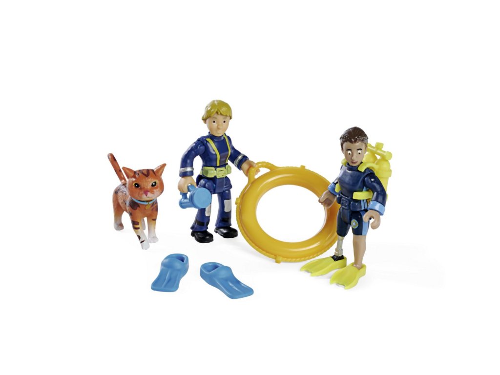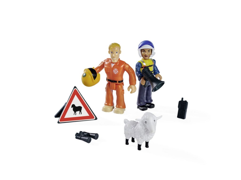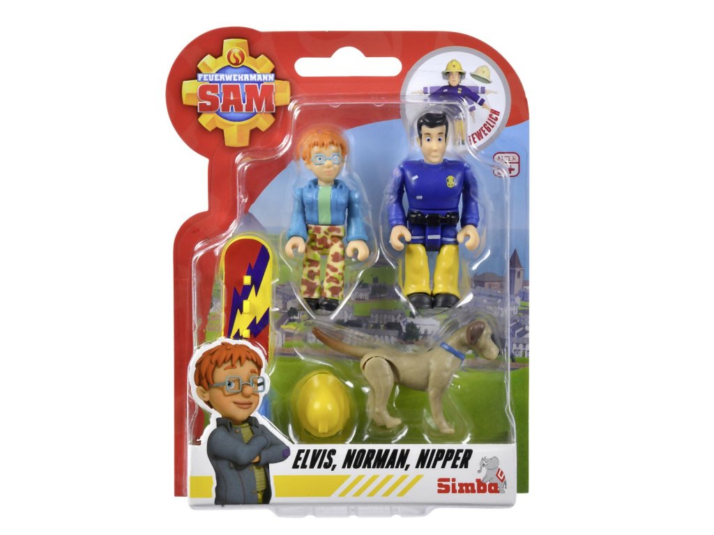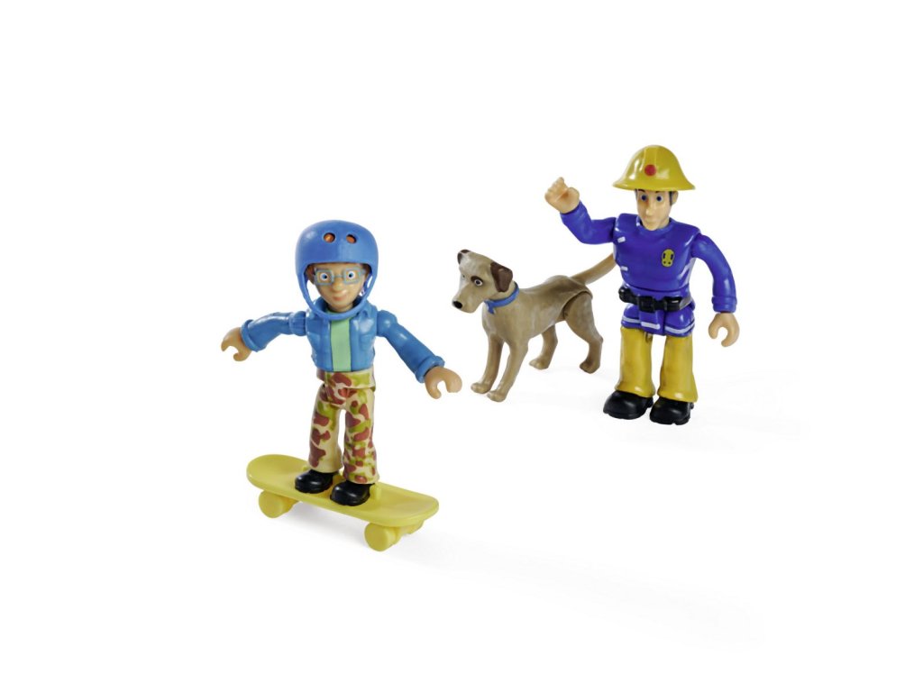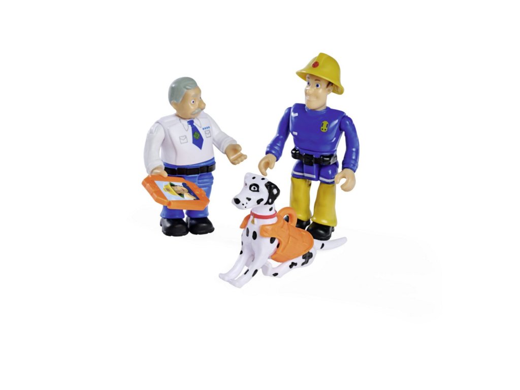 Sada figurek a zvířátka ze seriálu Požárník Sam. 4 druhy: Sam, Steele a pes Radar; Penny, Jodie a kočka Lion; Norman, Elvis a pes Nipper; Rose, Thomas a ovečka Wooly. Figurky mají pohyblivé končetiny, doplňky. Výška 7,5 cm.