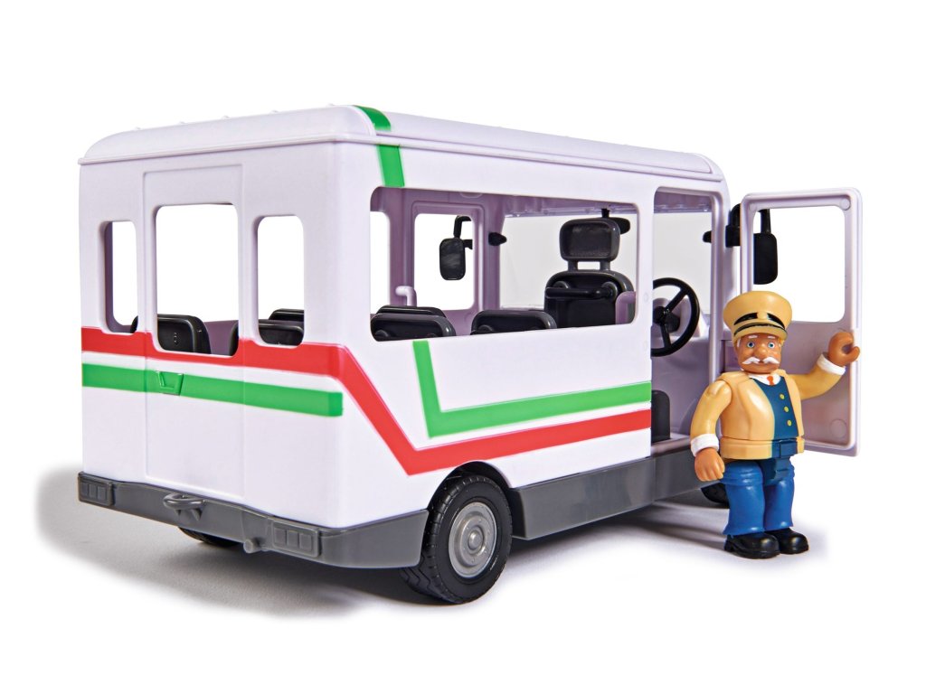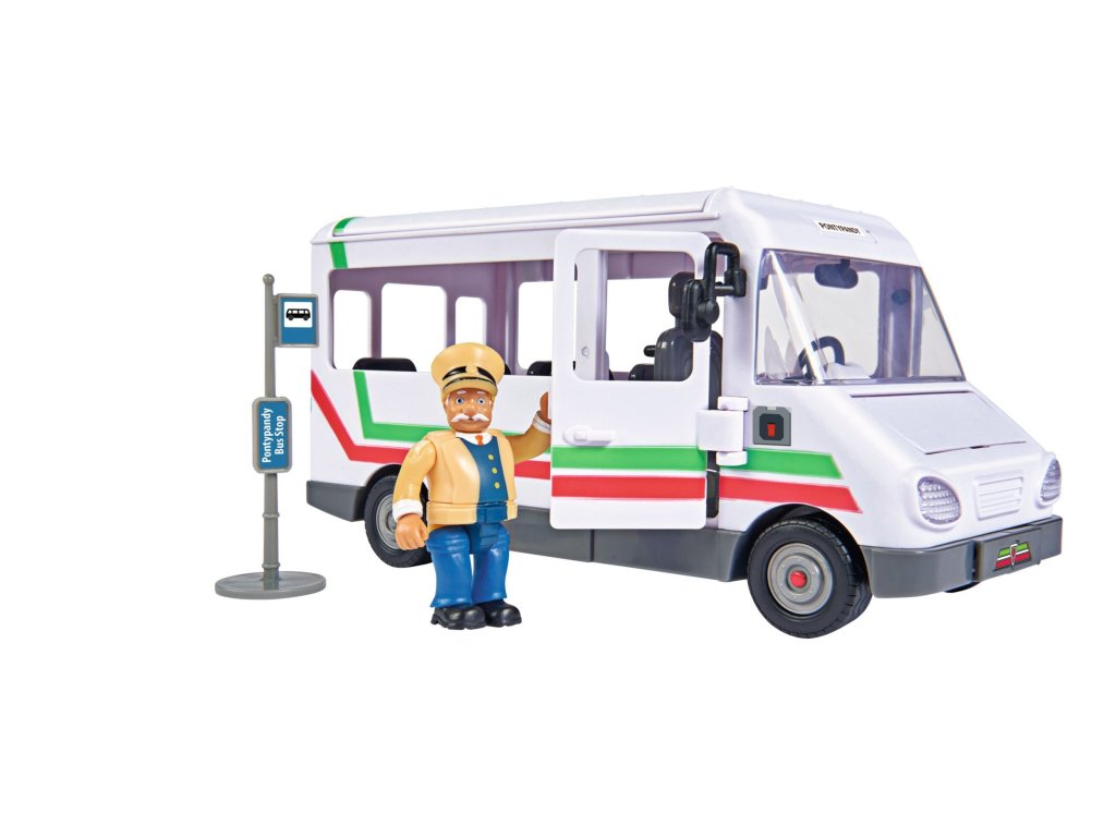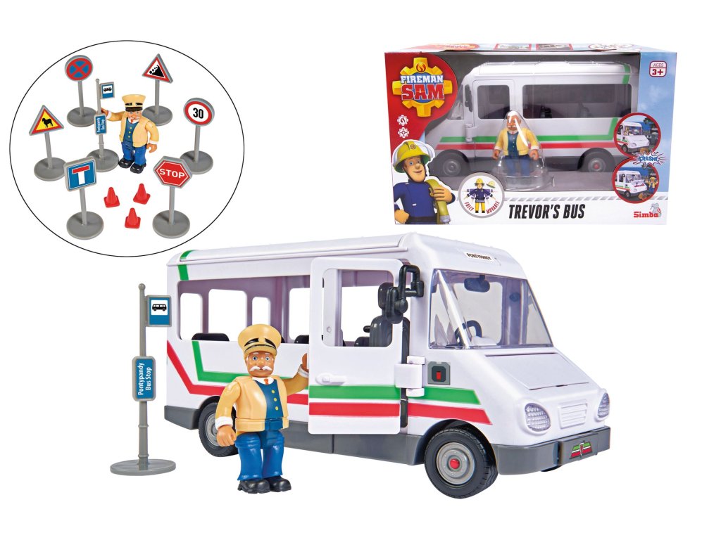 Trevorův autobus z oblíbeného seriálu Požárník Sam. Kapota motoru se při nárazu otevře a objeví se plameny. Otevírací dveře a střecha. Včetně figurky Trevora a dalšího příslušenství. Velikost 21 cm.