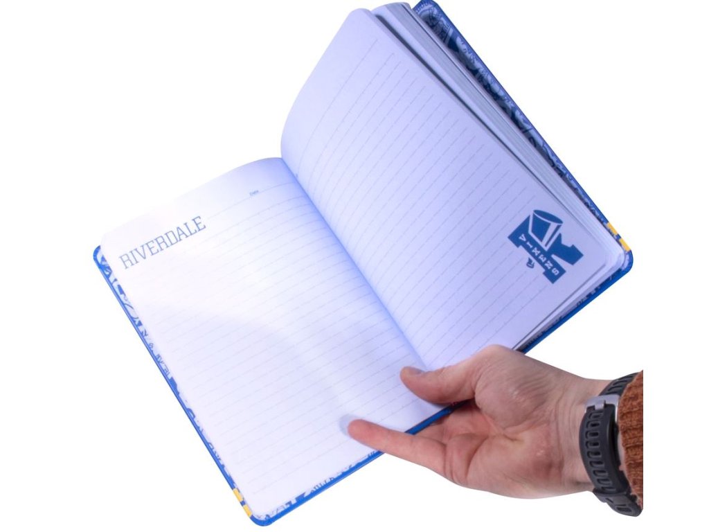 Oficiální blok z katalogu produktů s logem, fotografiemi a grafikou amerického dramatického seriálu Riverdale.