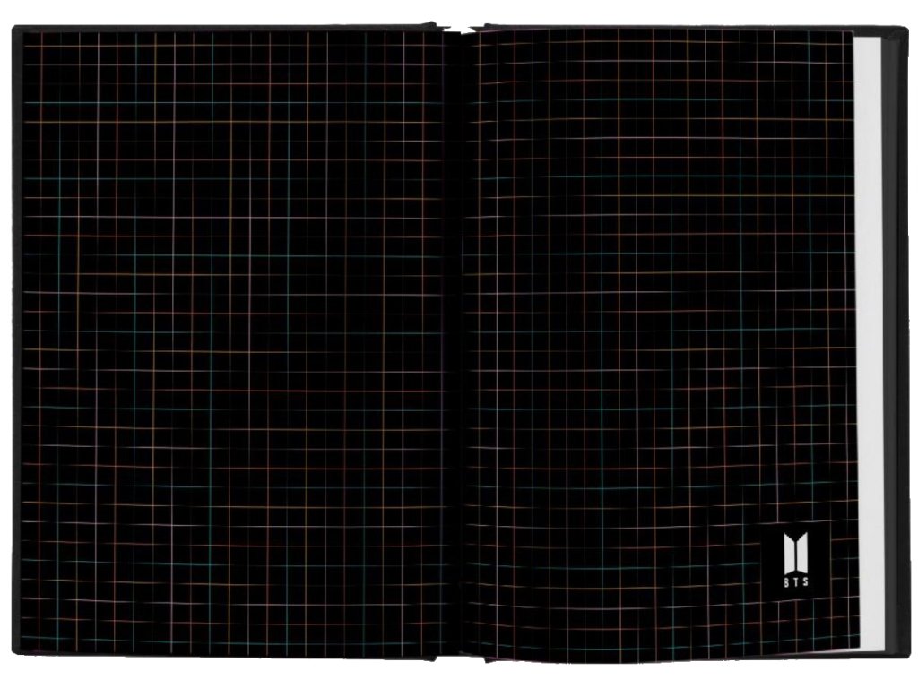 Zápisník ve formátu A5 vyvedený v motivu skupiny BTS.