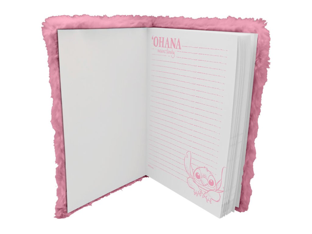 Premium růžový plyšový blok ve formátu A5 s grafikou Stitche a nápisem: ,,Ohana means family'' z pohádky Lilo and Stitch od společnosti Disney. Linkovaný poznámkový blok formátu A5 s měkkou vazbou je dokonalým parťákem pro všechny malé i velké fanoušky.