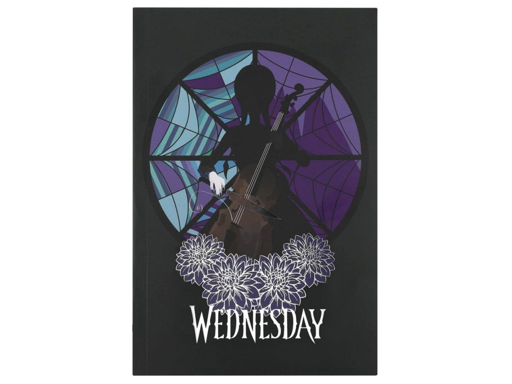 Na přední straně sešitu je podmanivý obrázek Středy hrající na violoncello s nožem před ikonickou vitráží. Design zápisníku v měkké vazbě usnadňuje přenášení s sebou, ať jdete kamkoli, a vysoce kvalitní papír zajišťuje, že vaše psaní, kreslení nebo psaní poznámek bude vypadat a cítit se skvěle.