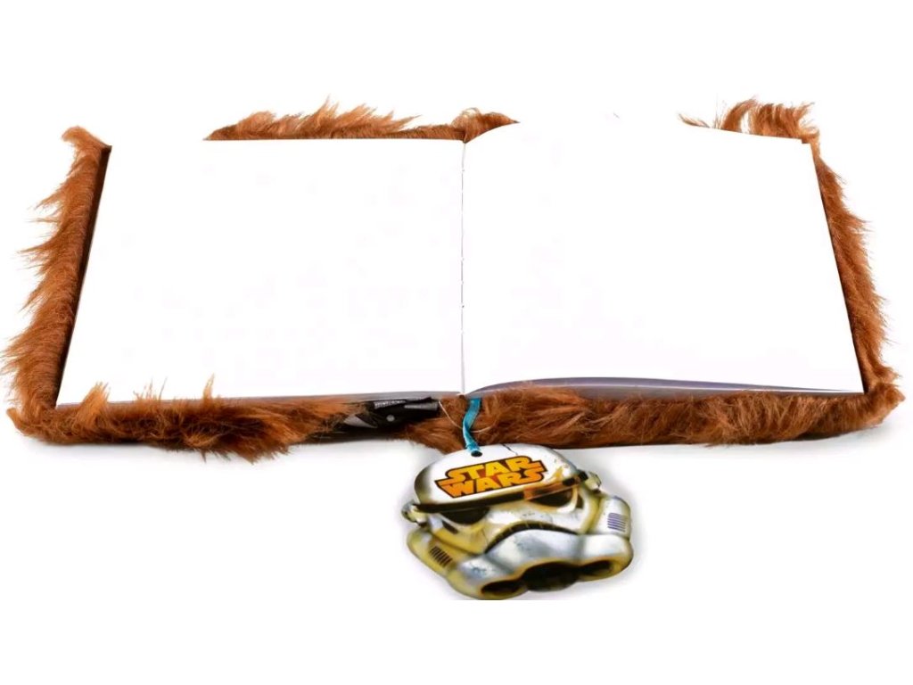 Poznámkový blok ve formátu A5, vyvedený v grafice srsti Chewbaccy, postavy z filmové sci-fi ságy.