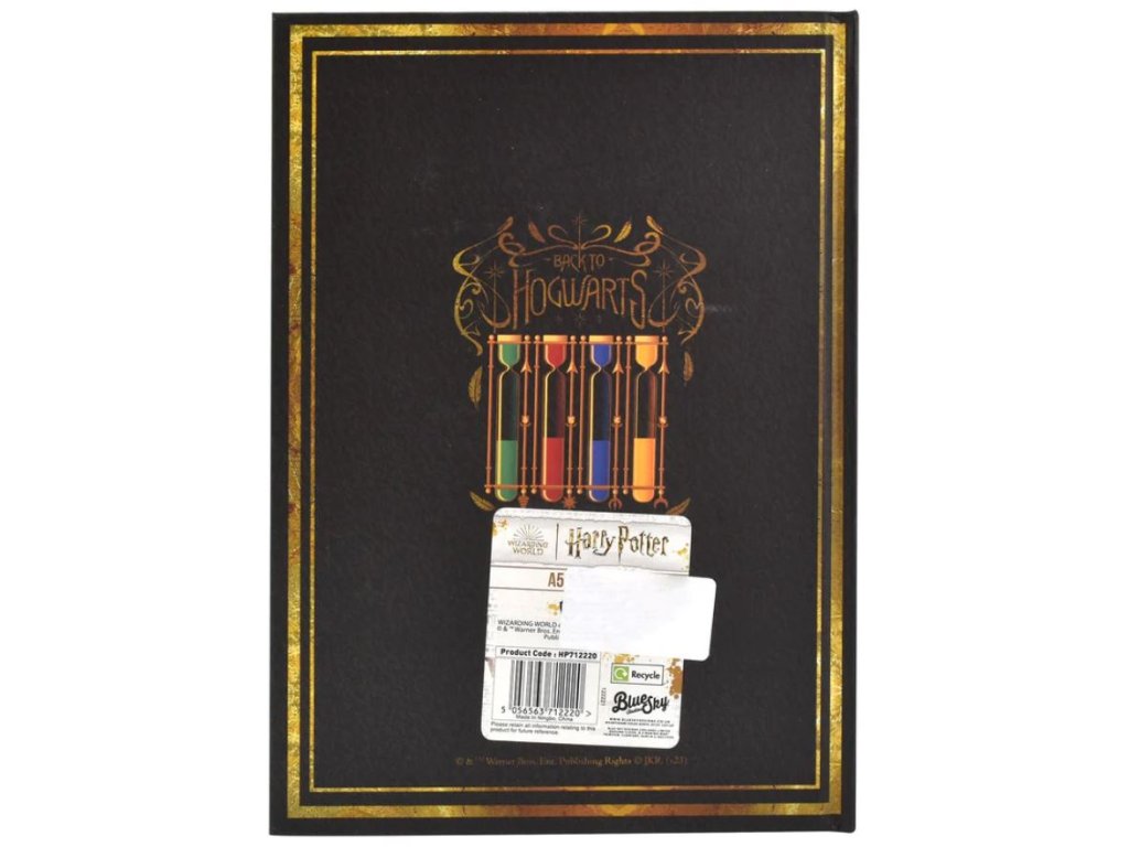 Zápisník velikosti A5 vázaný v pouzdře s potiskem erbu Bradavic z populární filmové a knižní série Harry Potter. Blok má 40 linkovaných listů a je vhodný pro všechny fanoušky pro nezbytné poznámky a zápisy!