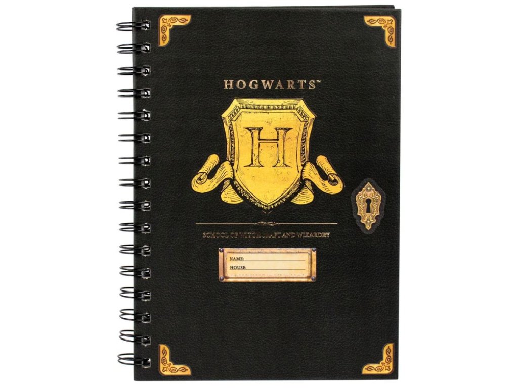 Oficiální produkt - zápisník z katalogu výrobků s licencí a grafikou filmové a knižní série Harry Potter.
