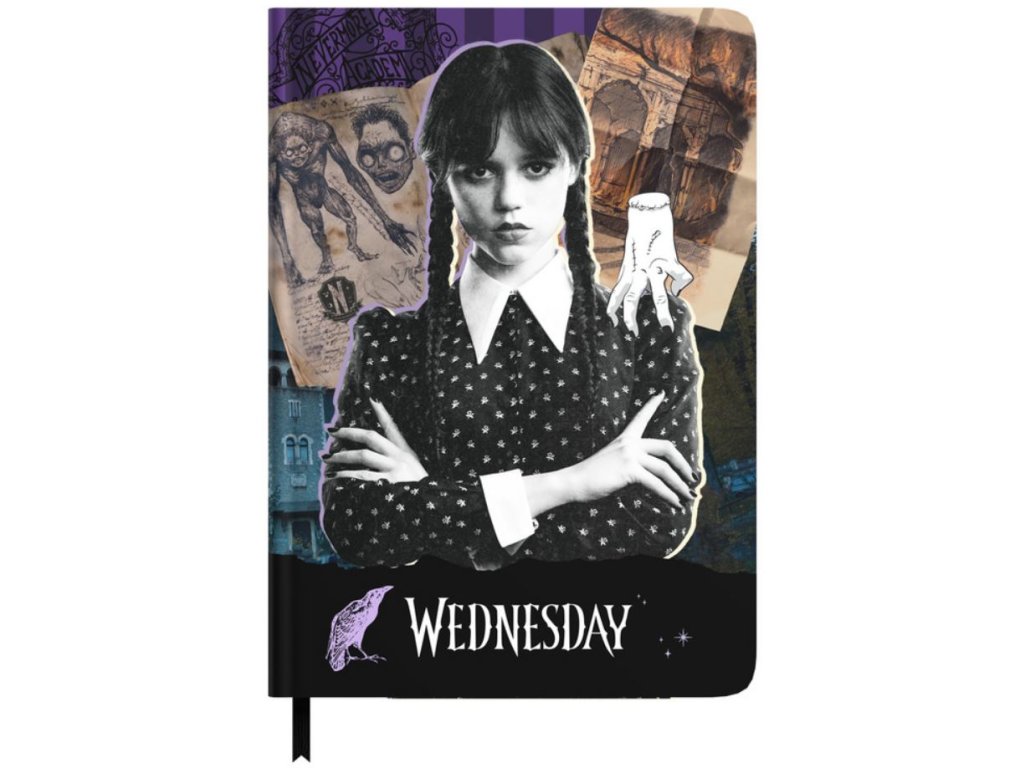 Oficiální produkt - zápisník z katalogu produktů s licencí a grafikou amerického seriálu Wednesday od společnosti Netflix.