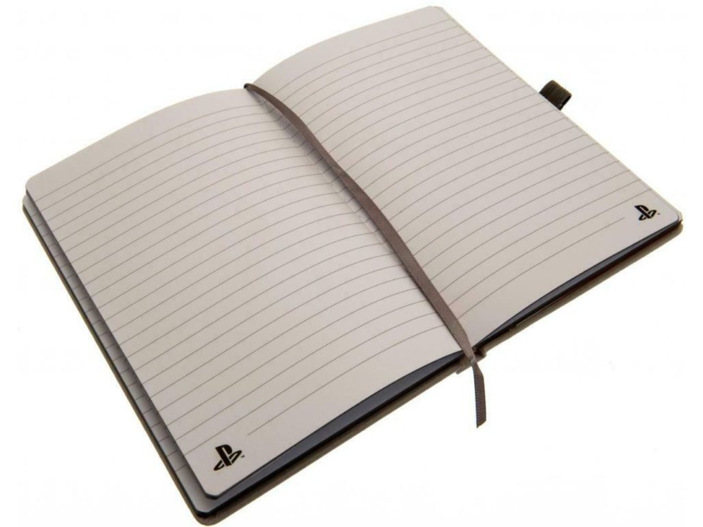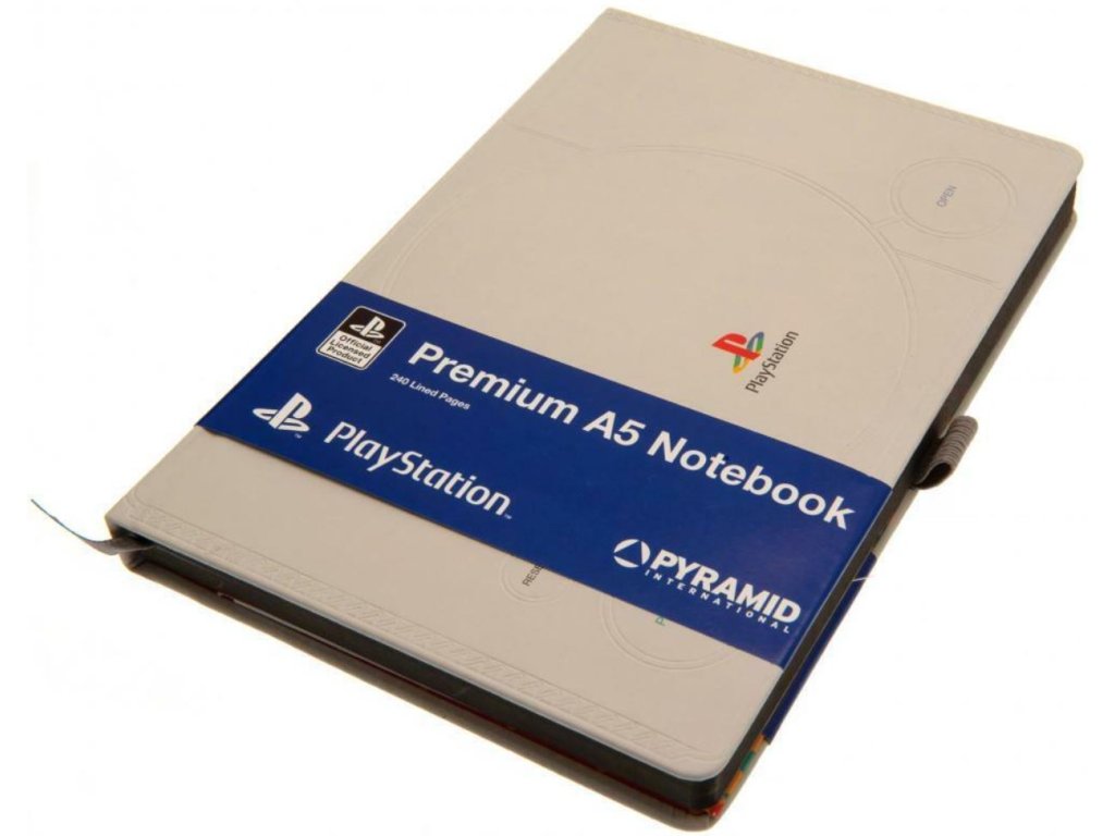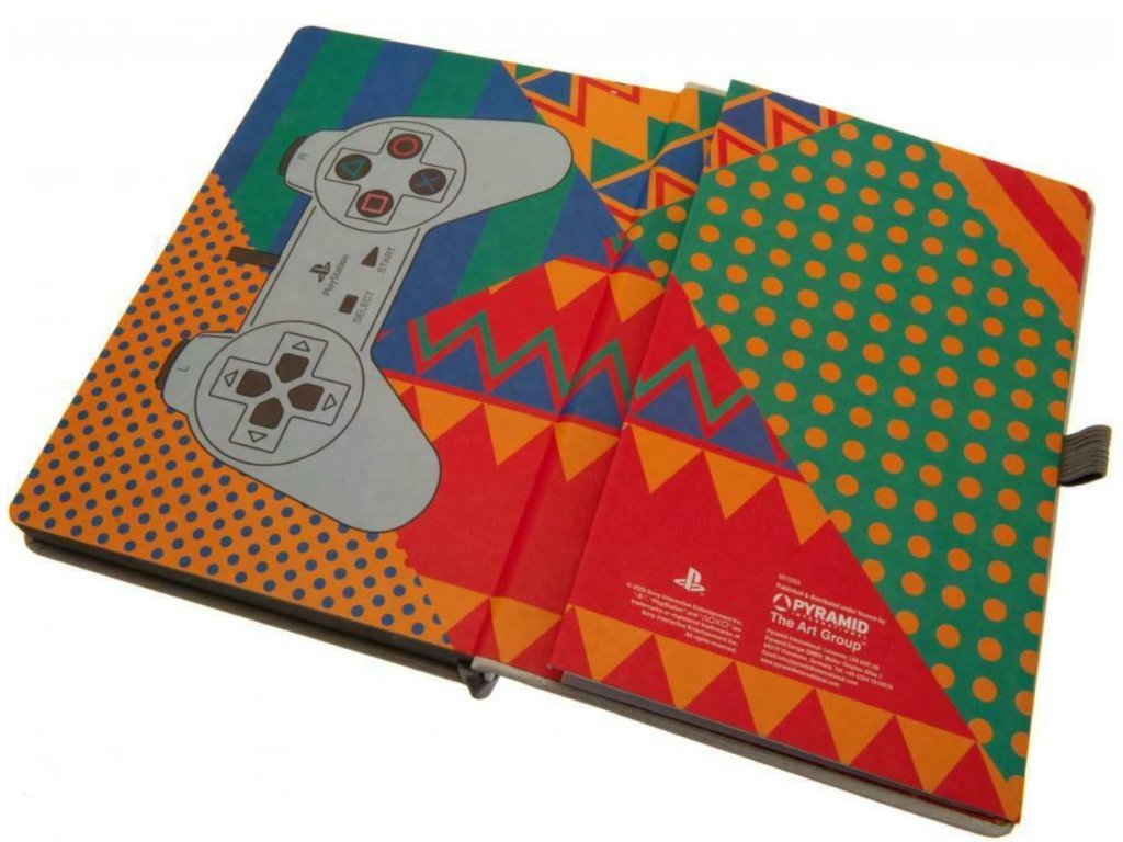 Zápisník ve formátu A5 s tvrdými deskami a 120 linkovanými listy s motivem herní konzole Playstation (PS1).