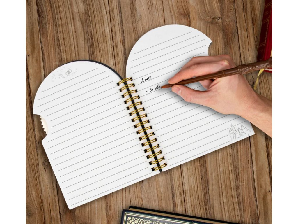 Oficiální produkt - zápisník z katalogu výrobků s licencí a grafikou filmové a knižní série Harry Potter.
