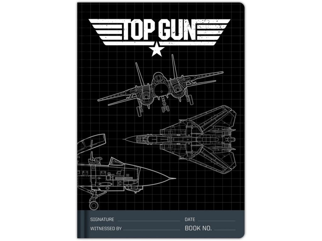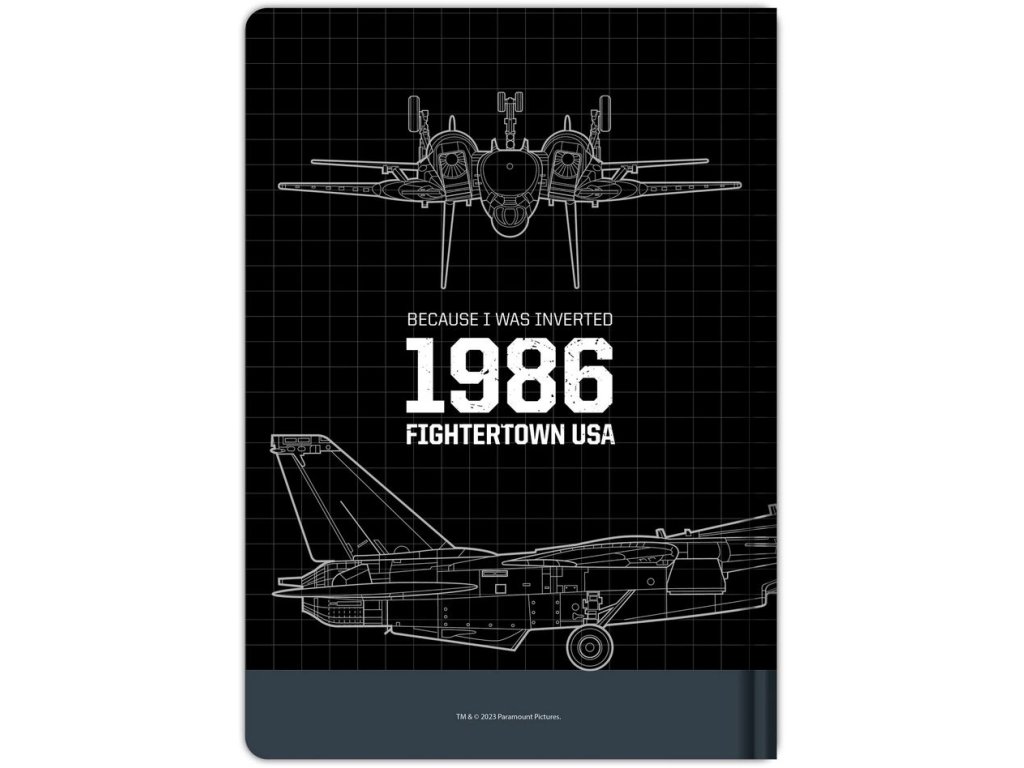 Poznámkový blok ve formátu A5 s linkami v provedení populární filmové série TOP GUN Air Fighter 1986 s pevnou zadní vazbou a 120 stranami papíru.