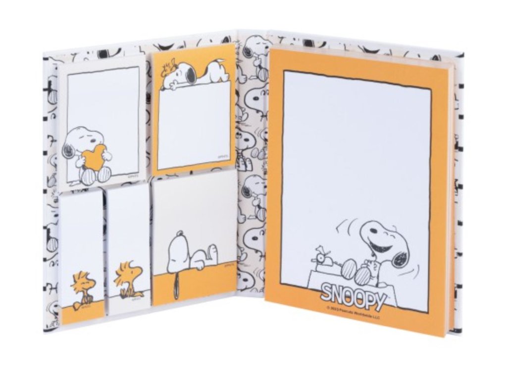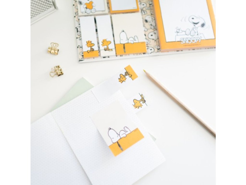 Blok v pevné vazbě obsahující zápisník a lepící štítky vyvedené v motivu kreslené postavičky Snoopy. Zápisník je nelinkovaný a samostatné listy lze jednoduše odtrhnout. Pět druhů lepících štítků ve dvou rozměrech a v zajímavých designech vám ozdobí vaše poznámky. Blok je skvělým pomocníkem pro vaše plánování nebo označení důležitých informací ve vaší práci.
