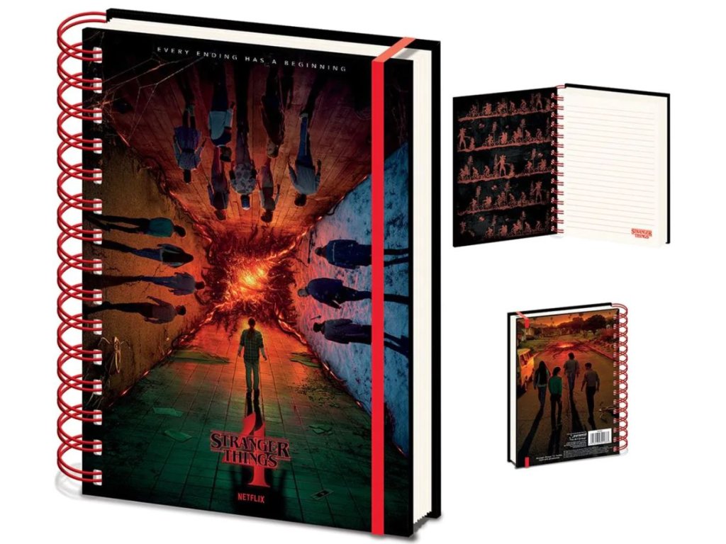 Zápisník ve formátu A5 s linkami a kroužkovou vazbou v provedení populárního amerického sci-fi mysteriózního seriálu Stranger Things: Every ending has a beginning. Blok je vhodný pro všechny menší i větší fanoušky, kteří si chtějí své poznámky zapsat ve stylu Stranger Things.
