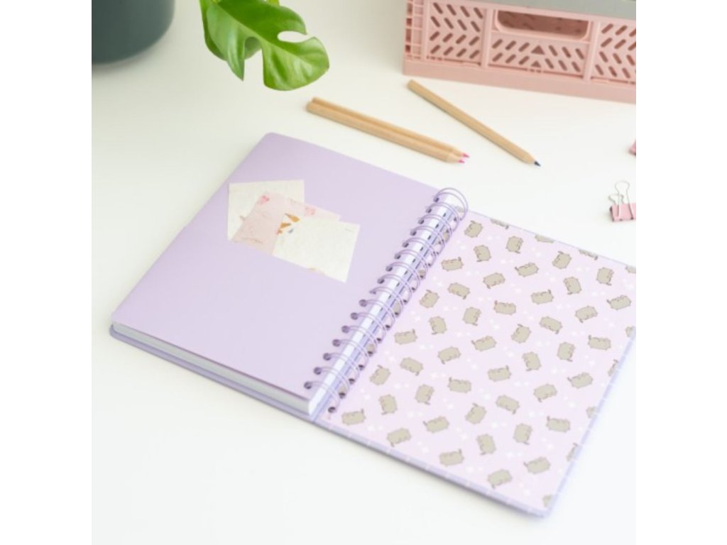 Oficiální produkt - poznámkový blok v kroužkové vazbě z katalogu kancelářského a dárkového zboží s grafikou, motivem a licencí populární kreslené kočky Pusheen.