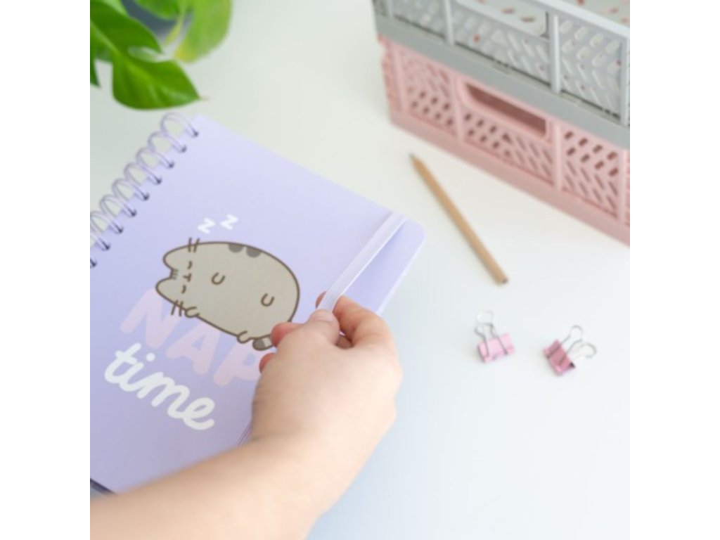 Zápisník ve fialové barvě a formátu A5 vyvedený v motivu kočky Pusheen a nápisem Nap time. Blok obsahuje 90 nelinkovaných listů (180 stran), drátěnou a pevnou vazbu s kulatými rohy, zavíráním na gumičku a vnitřní kapsu. Zápisník je vhodný i jako dárek pro všechny malé i velké fanoušky této roztomilé kočičky.