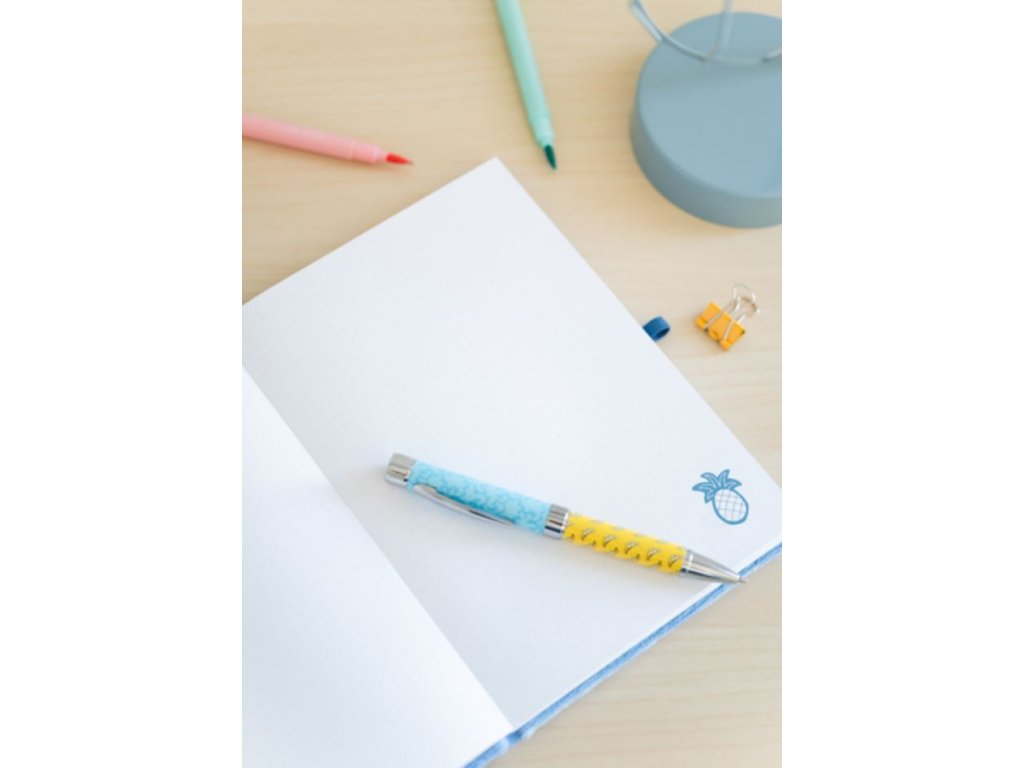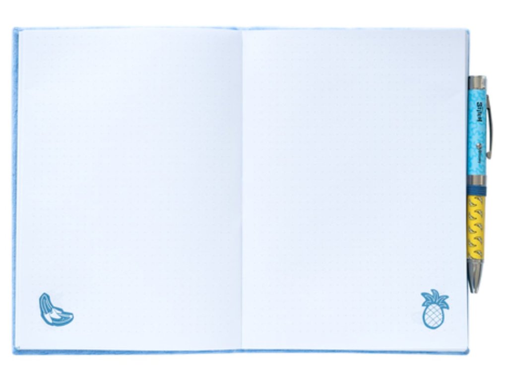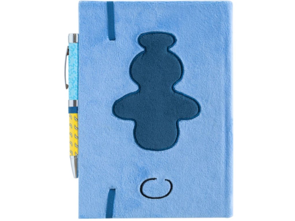 Zápisník A5 v pevné vazbě s promítacím perem. Obsahuje obal s plyšovou podšívkou a vyšívaný design, personalizovaný vnitřek typu odrážky, rovné rohy, kapsu a lepenou vazbu. Obsahuje 90 čtverečkovaných listů (180 stran) o tloušťce 100 g/m2. Součástí je také pero, které promítá obraz po stisknutí tlačítka umístěného na jeho těle a které funguje se 4 bateriemi AG3 1,5V (součástí balení).