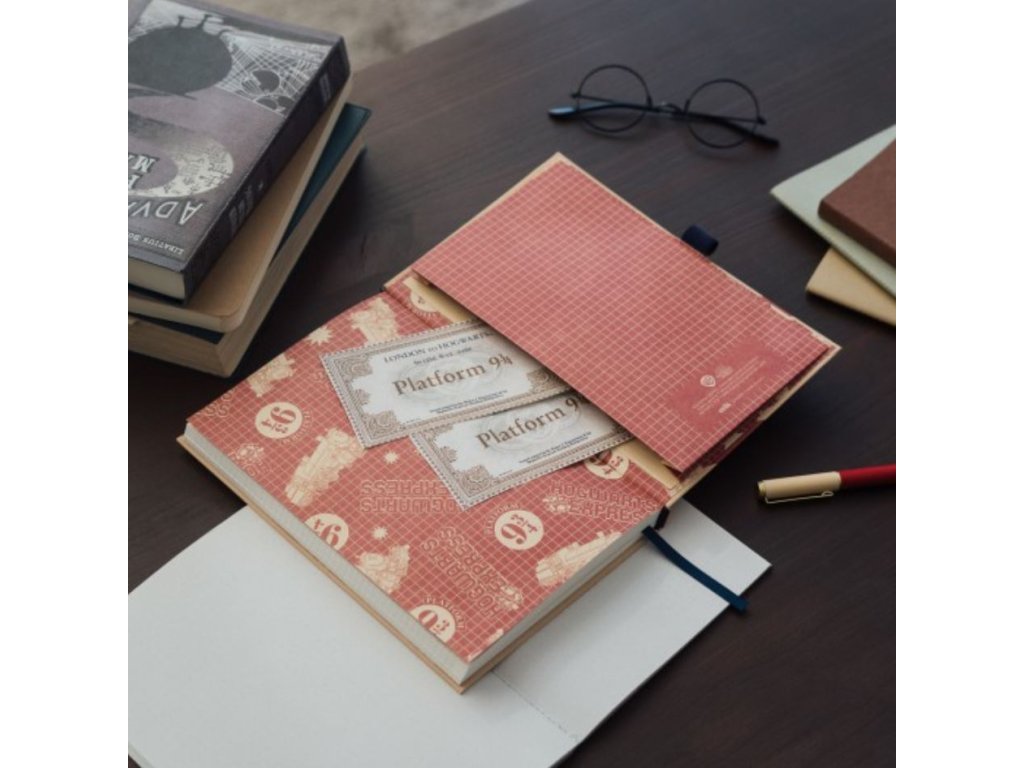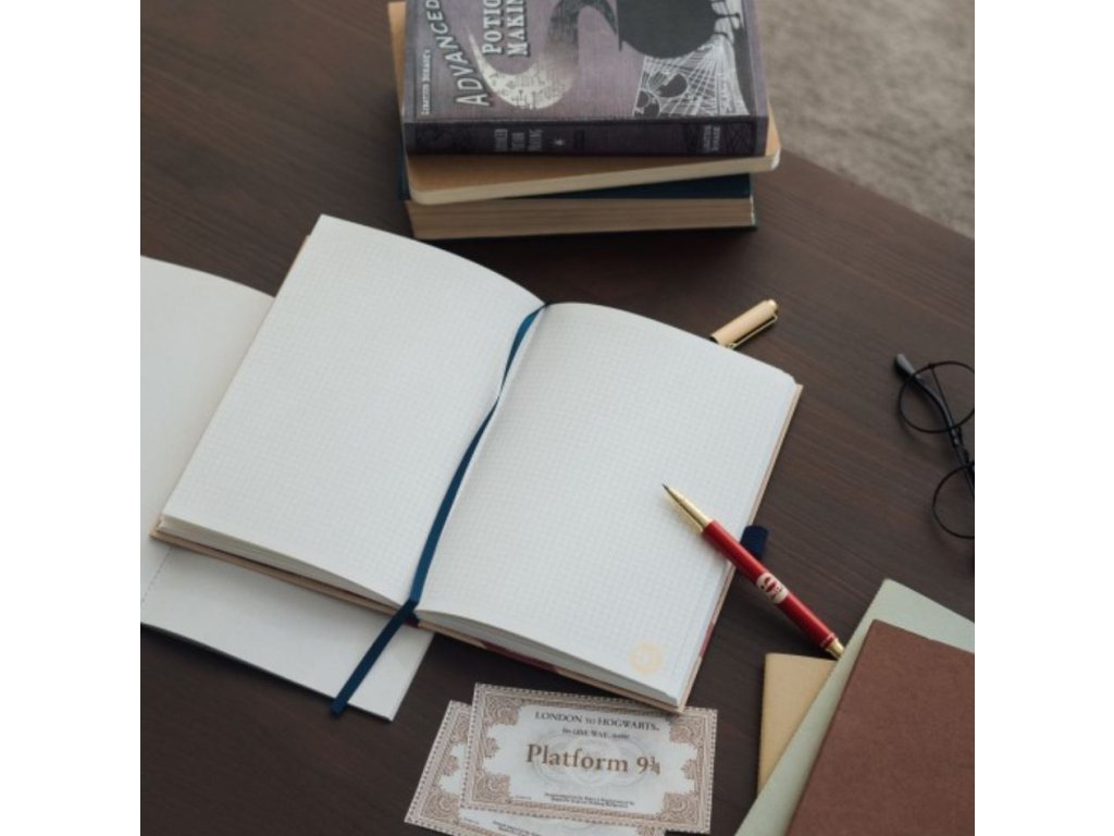 Prémiový zápisník velikosti A5 v pevné vazbě s propiskou a s potiskem Bradavického expresu na nástupišti 9 3/4 z populární filmové a knižní kouzelnické série Harry Potter. Blok obsahuje 96 čtverečkovaných listů (192 stran), propisku, textilní záložku, gumičku pro pevné uzavření zápisníku a obálku na zadní pevné straně bloku. Zápisník je vhodný i jako dárek pro všechny fanoušky této kouzelnické ságy, například pro jejich poznámky jednotlivých kouzel či receptů lektvarů.