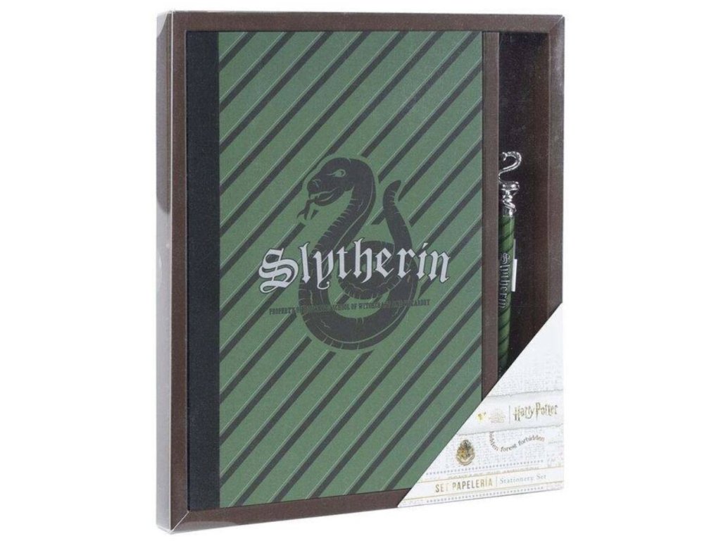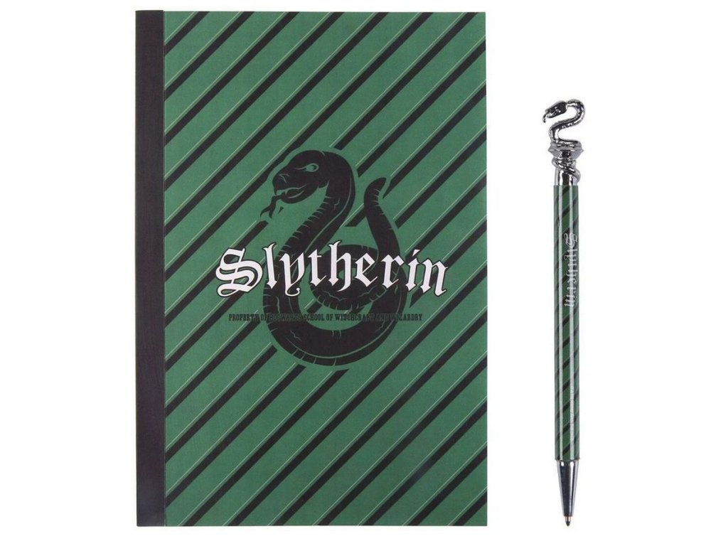 Atraktivní poznámkový blok nelinkovaný ve formátu A5 s propiskou v grafice koleje Slytherin (Zmijozelu).