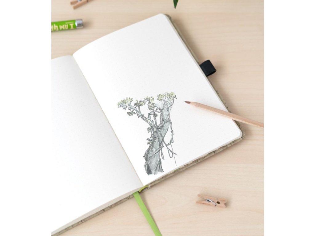 Na konci bloku je papírová kapsa na možné uložení karet nebo poznámek. Blok je opatřen sponou se cvočkem, která slouží proti nechtěnému otevření.