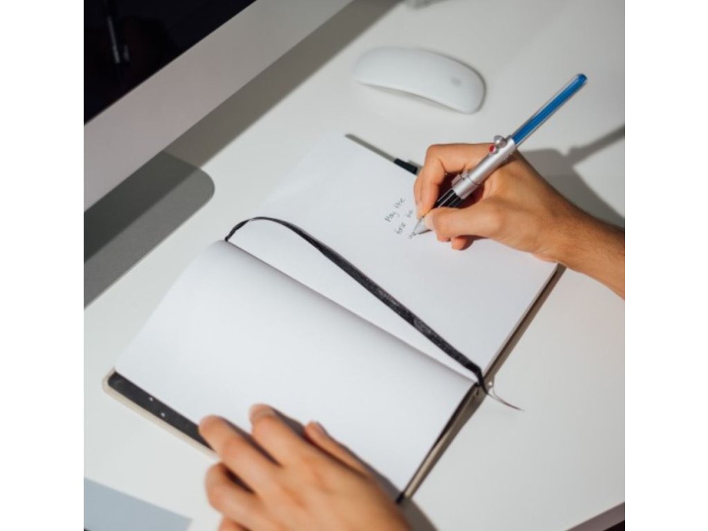 Zápisník A5 v pevné vazbě s perem se světelným mečem. Má přebal z PU s reliéfním a metalickým potiskem postavy jménem Luke Skywalker, vnitřek kuličkového typu, zaoblené rohy, lepenou vazbu, stuhu na záložku, kapsu a zavírání na magnetickou sponu. Obsahuje 96 listů (192 stran) gramáže 100 g/m2. Součástí je také pero, které simuluje světelný meč, který vydává světlo po stisknutí tlačítka umístěného na jeho těle a které funguje na 3 1,5V AG3 baterie.