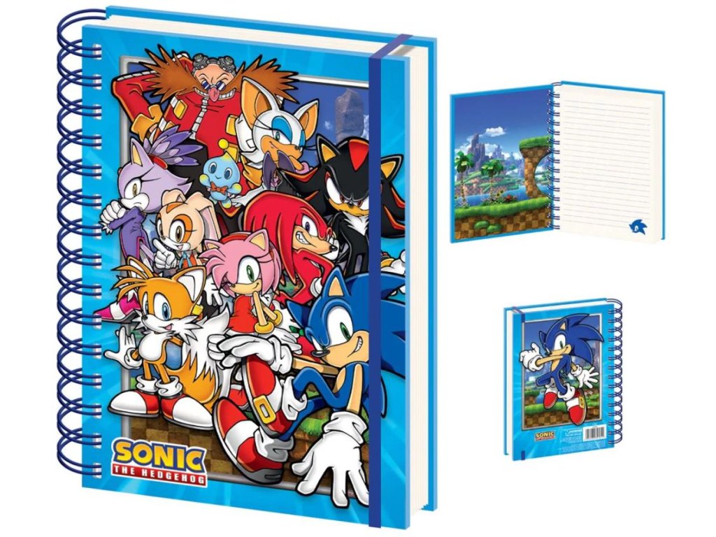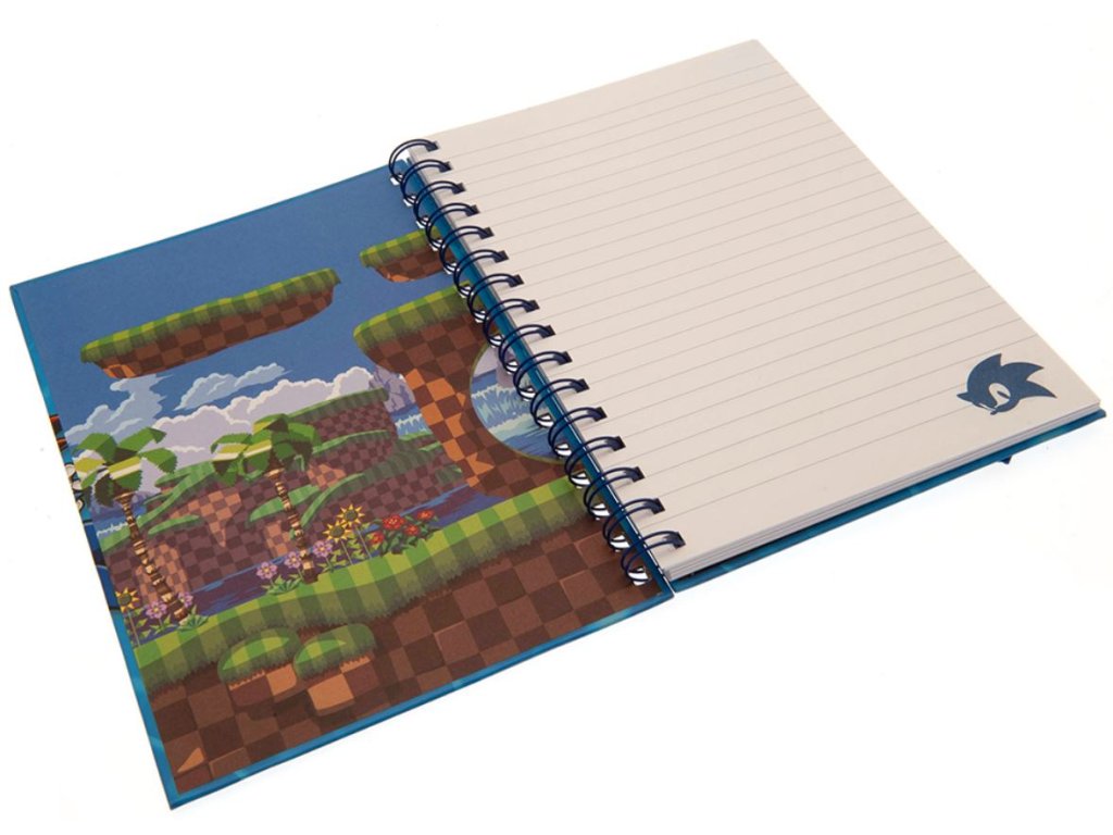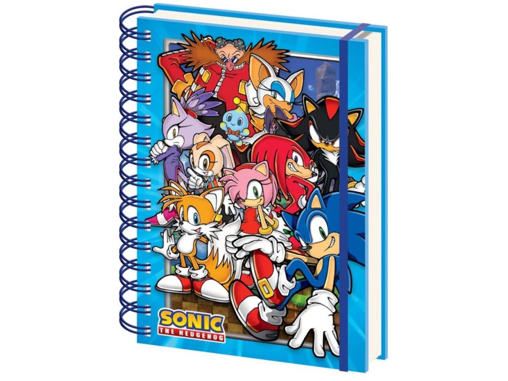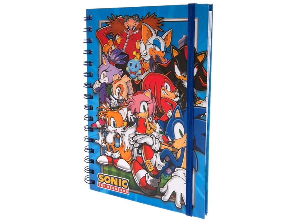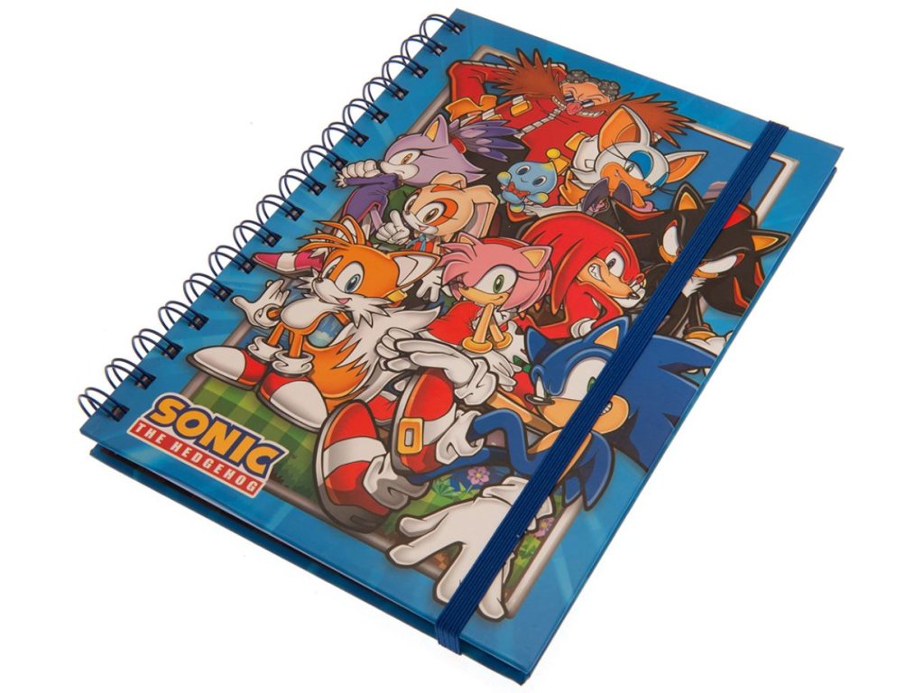 Oficiální produkt - poznámkový blok v kroužkové vazbě z katalogu kancelářského a dárkového zboží s grafikou a licencí populární počítačové hry Sonic the Hedgehog.