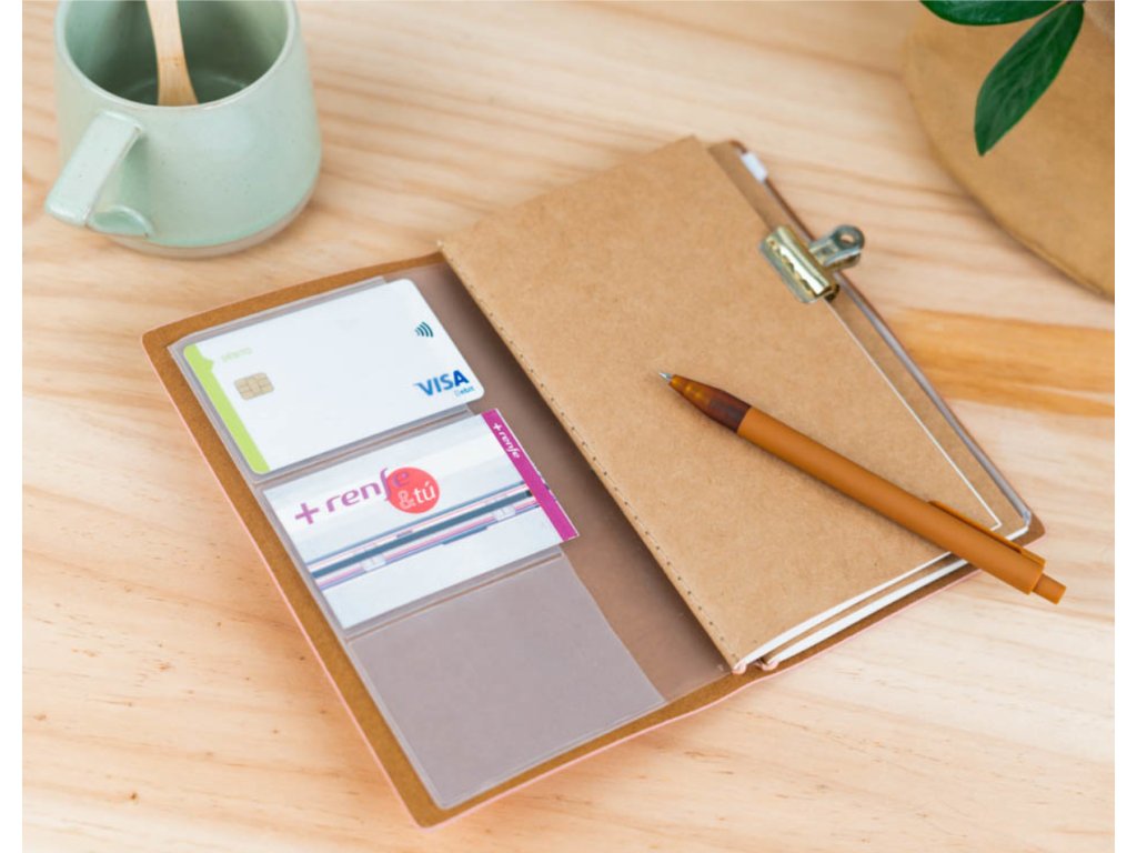 Uvnitř bloku je plastová uzavíratelná kapsa a plastový pořadač na platební karty.