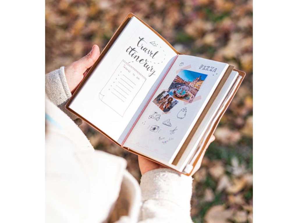 Blok poslouží při cestách, turistům umožní zaznamenat itinerář cesty, umožnuje uschovat letenky, jízdenky nebo pas.