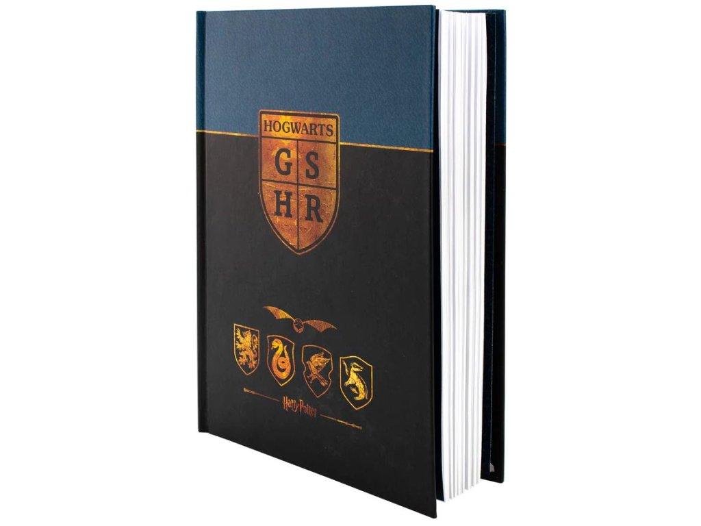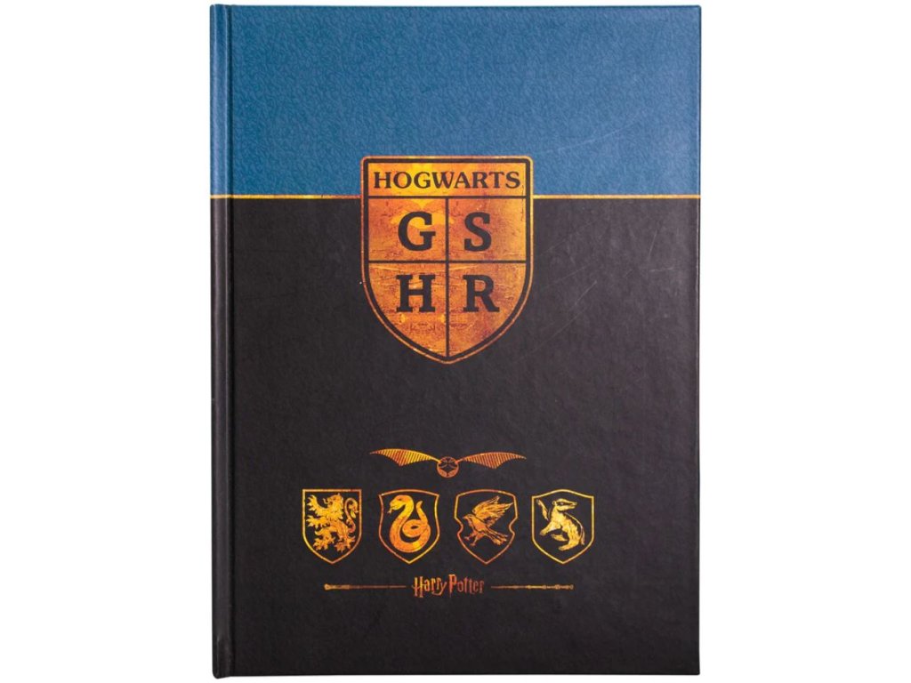 Poznámkový blok Premium formátu A5 s grafikou štítu školy čar a kouzel v Bradavicích. Blok má 120 stránek linkovaného papíru.