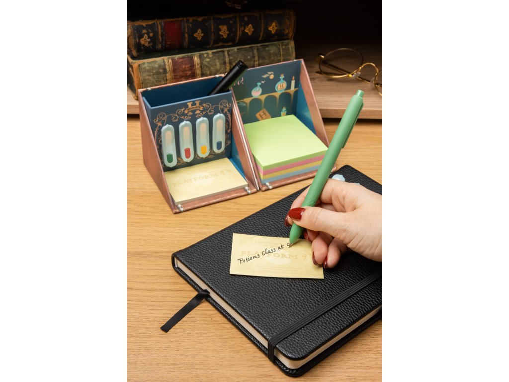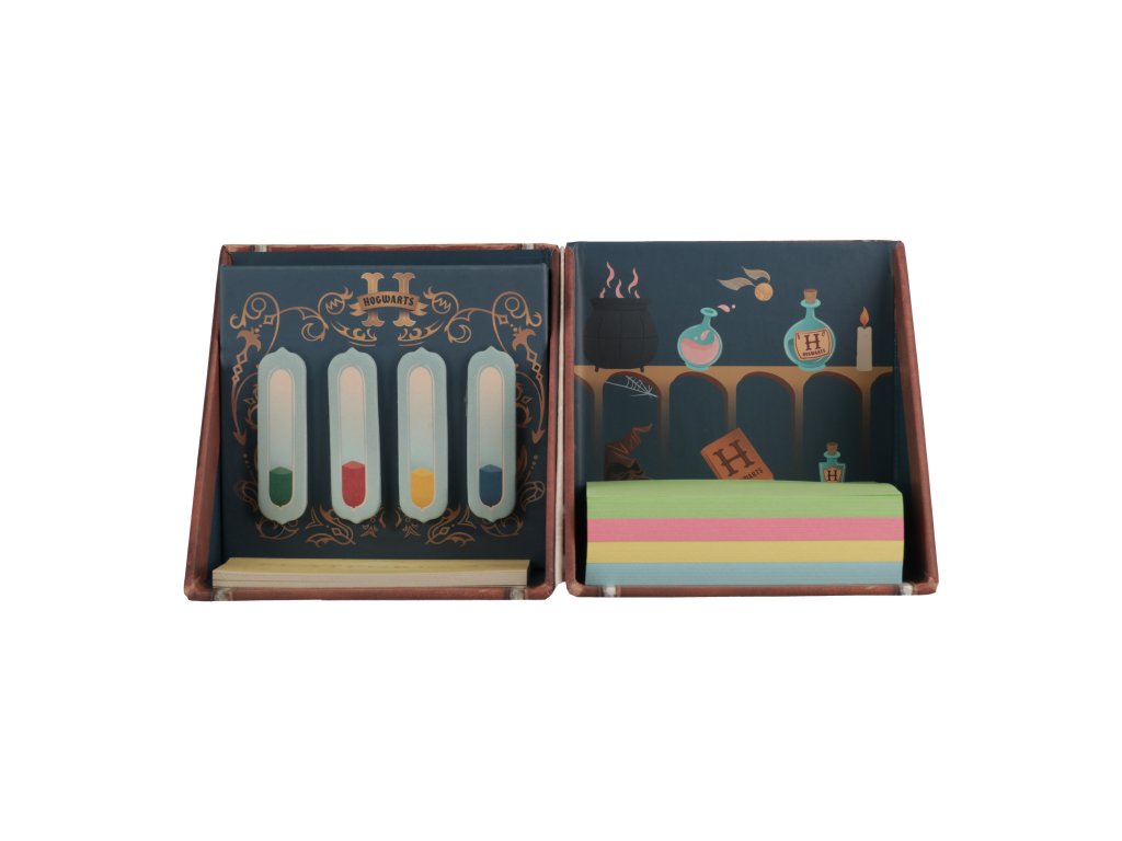 Dárková kancelářšká sada obsahující bloček, lepítka a další dopňkové zboží s motivem kouzelnického světa Harryho Pottera. Tato sada je ideální pro plánování vaší práce, či označení důležitých poznámek.
