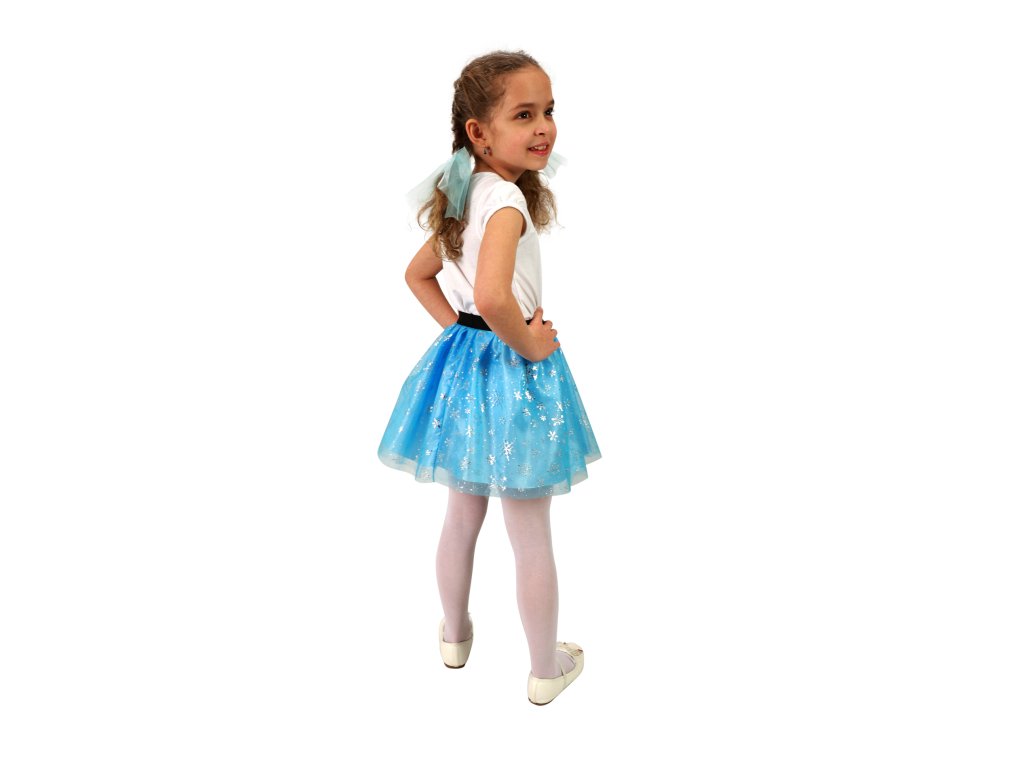 Roztomilá sukně TUTU pro všechny zimní princezny! Sukýnka je určena pro holčičky ve věkovém rozmezí 3-7 let. Nadýchaná suknička modré barvy je zdobena třpytivými sněhovými vločkami a její delka je cca 30 cm. Sukně je v pase na gumičku.