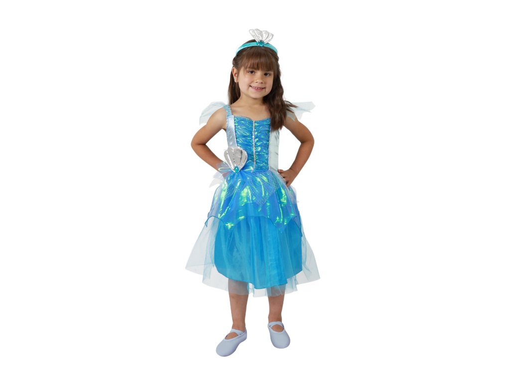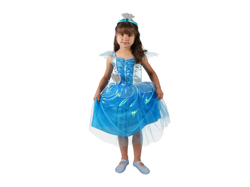 Úchvatný karnevalový kostým ve stylu mořské princezny! Kostým ve famózní modré barvě s flitry a velikosti S je určen pro holčičky ve věkovém rozmezí 4-6 let (110-116 cm). Balení obsahuje nadýchané modro-stříbrné šaty a čelenku. Nejen letos je potřeba myslet EKO-nomicky i EKO-logicky! EKO-balení je vhodné zejména pro e-shopy kde zákazník nakupuje dle fotografie a není třeba velkého balení s věšákem. EKO-logicky – na balení bylo použito méně plastu a dalších materiálů. Jedná se o malý transparentní obal s fotografií. EKO-nomicky –EKO-obal zabere jen polovinu místa – šetřete skladová místa s námi!