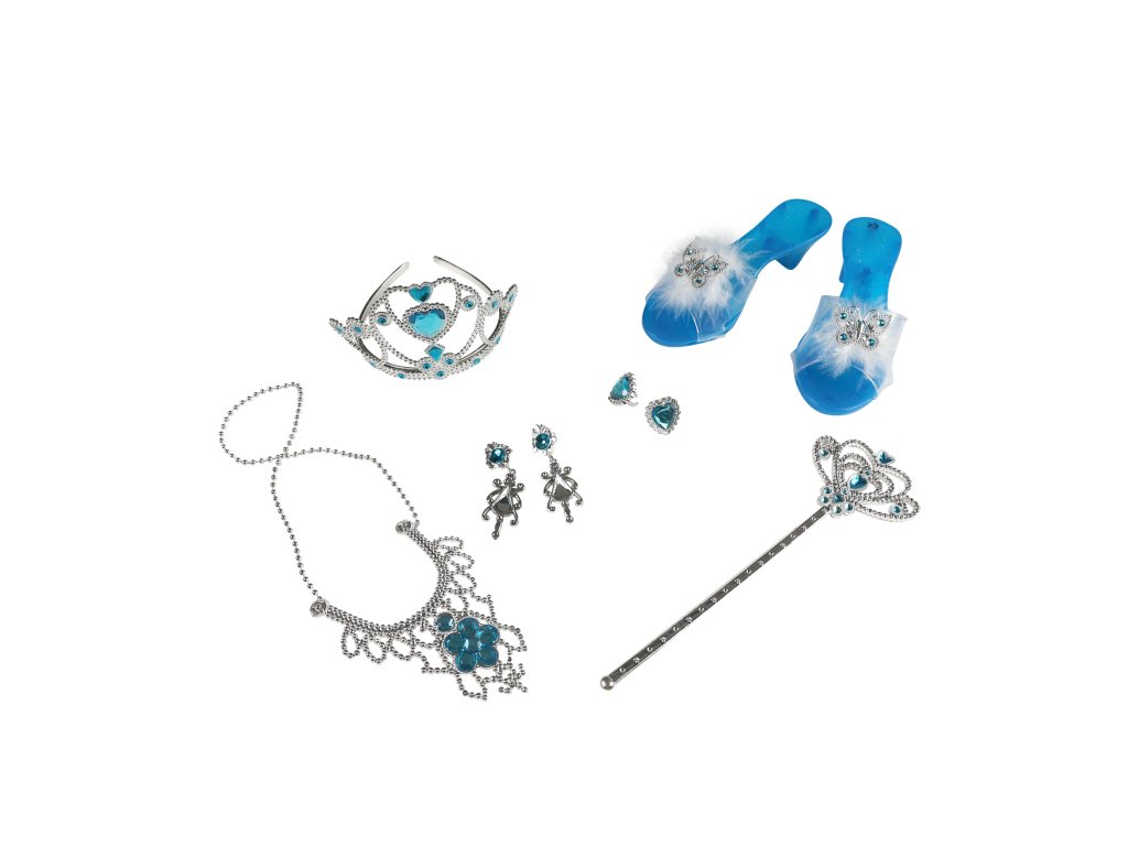 Staň se na okamžik zimní princeznou díky těmto překrásným doplňkům! V balení najdeš luxusní střevíčky (18 cm), krásnou korunku, žezlo a úchvatný náhrdelník s náušnicemi a prstenem.
