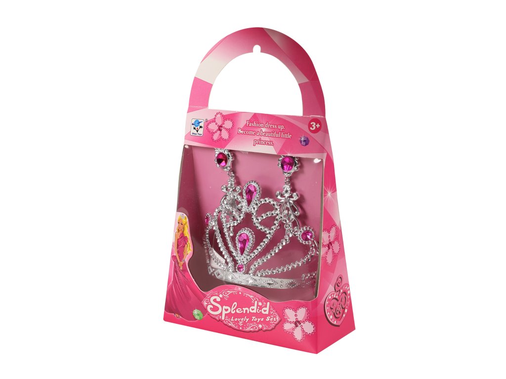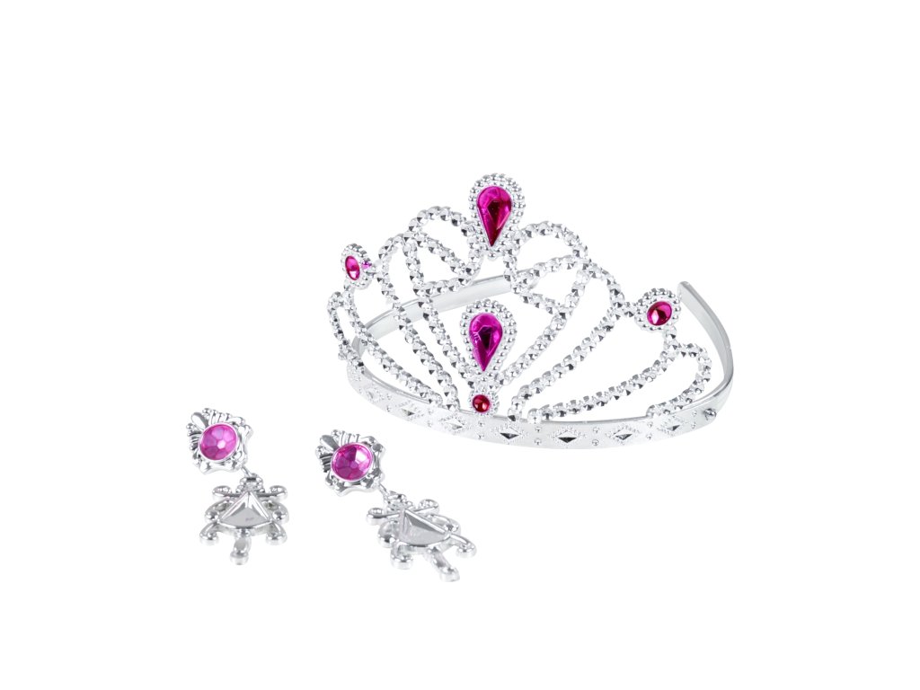 Krásná korunka stříbrné barvy s náušnicemi pro všechny malé princezny. Oba doplňky jsou zdobeny nepřehlédnutelnými růžovými ozdobnými kamínky. Perfektní sada ke kostýmu! Doporučeno pro děvčata od 3 let.