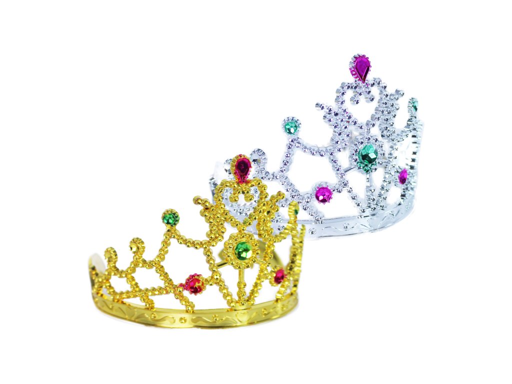 Plastová korunka zdobena barevnými prvky pro malé princezny! Tento okouzlující kousek nabízíme ve stříbrné a zlaté variantě. Stačí si vybrat! Lze objednat jen po 12 ks.