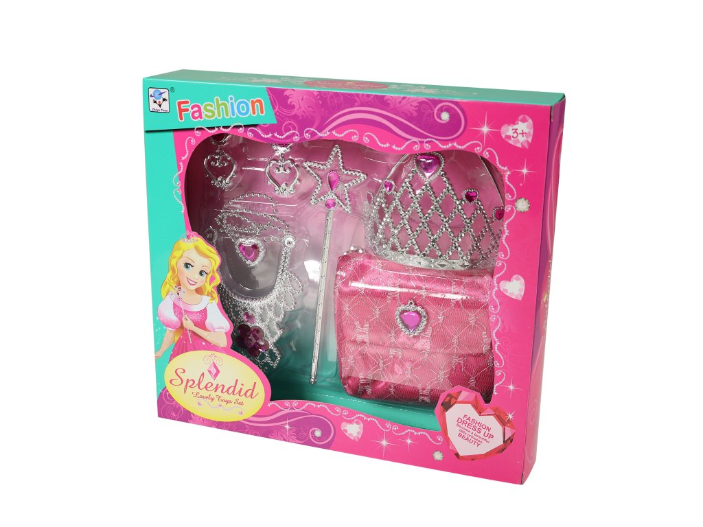 Exkluzivní sada pro všechny malé princezny! Krásná korunka s náušnicemi, náhrdelníkem, hůlkou a kabelkou. Doplňky jsou zdobeny růžovými prvky. Perfektní sada ke kostýmu! Doporučeno pro děvčata od 3 let.