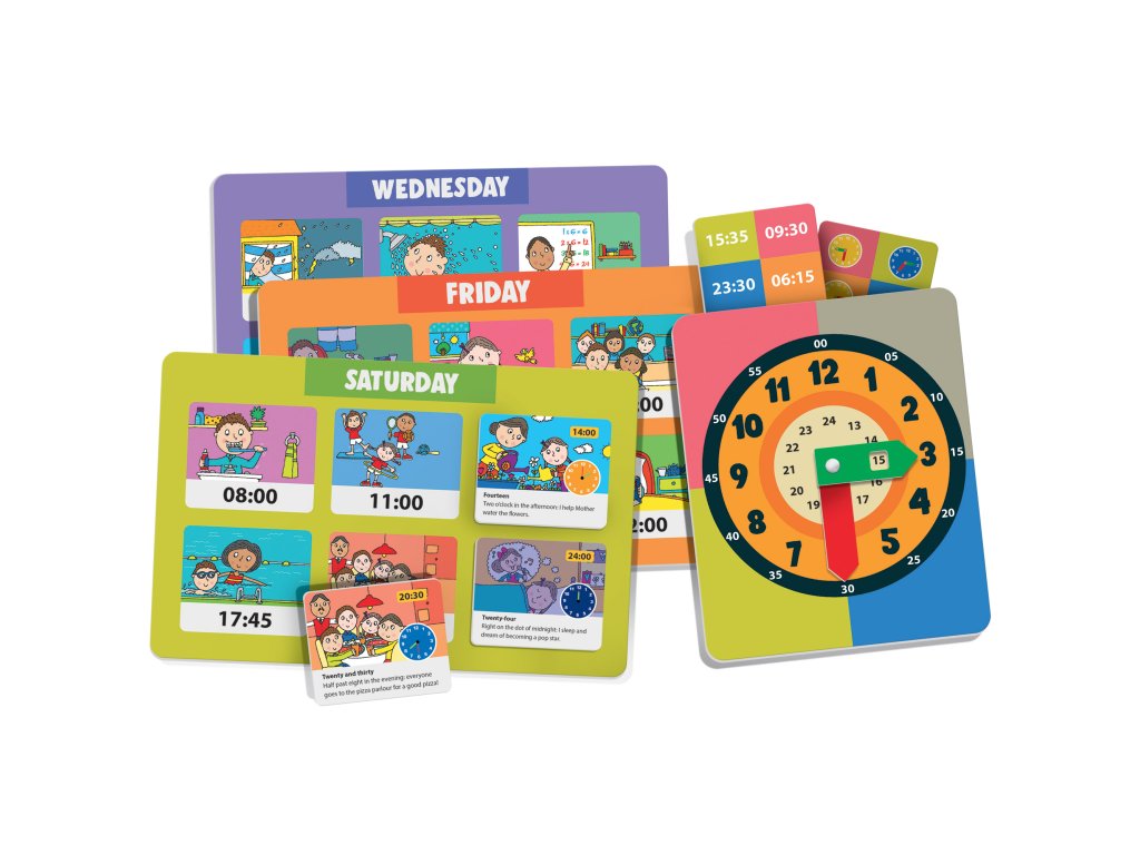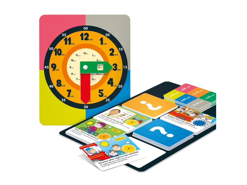 4 hodiny odpoledne nebo 16:00 h? Je čas na hru! Děti si užijí zábavu s touto hrou bingo zaměřenou na čas. Sledují, co jednotlivé postavy dělají v kteroukoliv denní dobu a kterýkoliv den v týdnu, procvičují si čtení a učí se říci čas v hodinách a minutách na analogových, digitálních i jiných typech hodin.