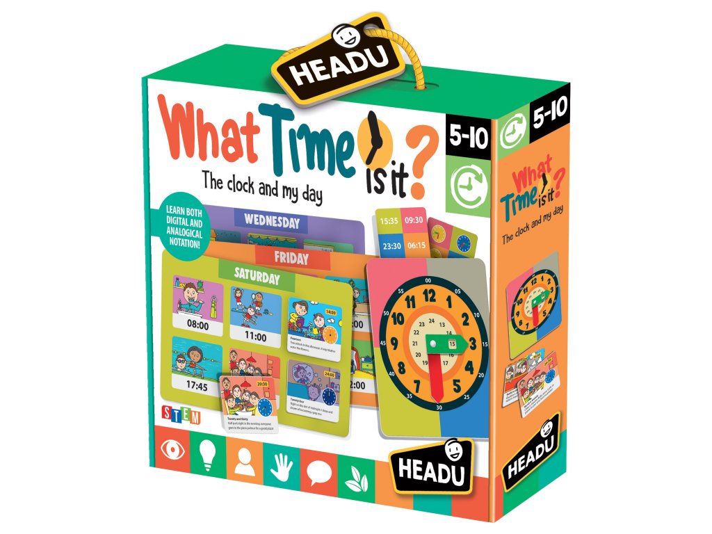 Herní úrovně pro dospělé a děti, digitální a analogická notace, hodiny a minuty, ráno a odpoledne, konvenční způsob určování času, činnosti a dny v týdnu