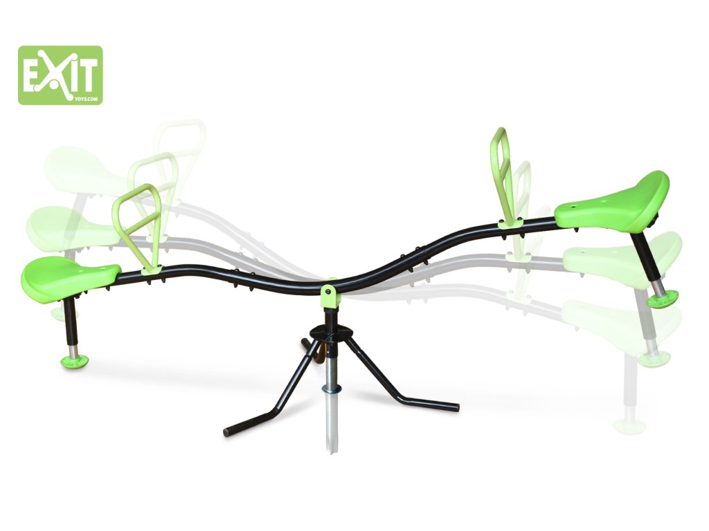 Na této speciální houpačce Exit Seesaw se můžete houpat nejen nahoro a dolu, ale také se točit do kola o 360 stupňů. Houpání je tlumeno specílními tlumiči pod sedákem.