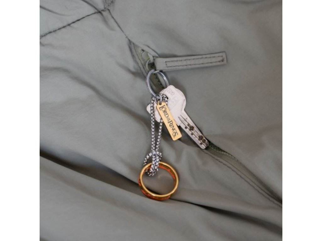 Kovový přívěsek na klíče vyvedený ve tvaru prstenu. Je vyroben ze slitiny zinku. Nápis na prstenu je opatřen luminiscenčním inkoustem, který po absorbování přirozeného nebo UV světla umožňuje svítit ve tmě. Přívěsek je vhodným dárkem pro všechny menší i větší fanoušky Pána prstenů.