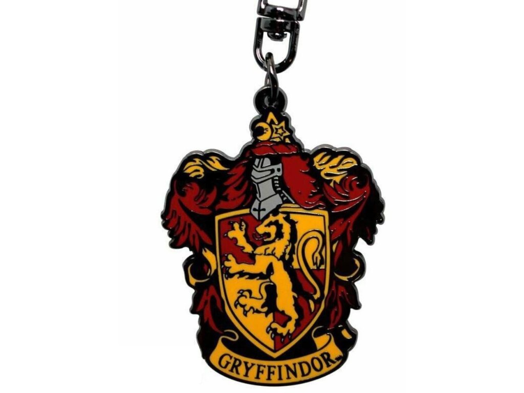Dekorační kovový přívěsek na klíče vyvedený v grafice Nebelvírského erbu (Gryffindor Crest), jedné z kolejí ve škole čar a kouzel v Bradavicích ze ságy Harryho Pottera.