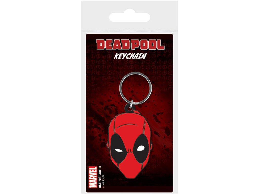 Pryžový přívěsek na klíče vyvedený ve tvaru tváře Deadpoola.