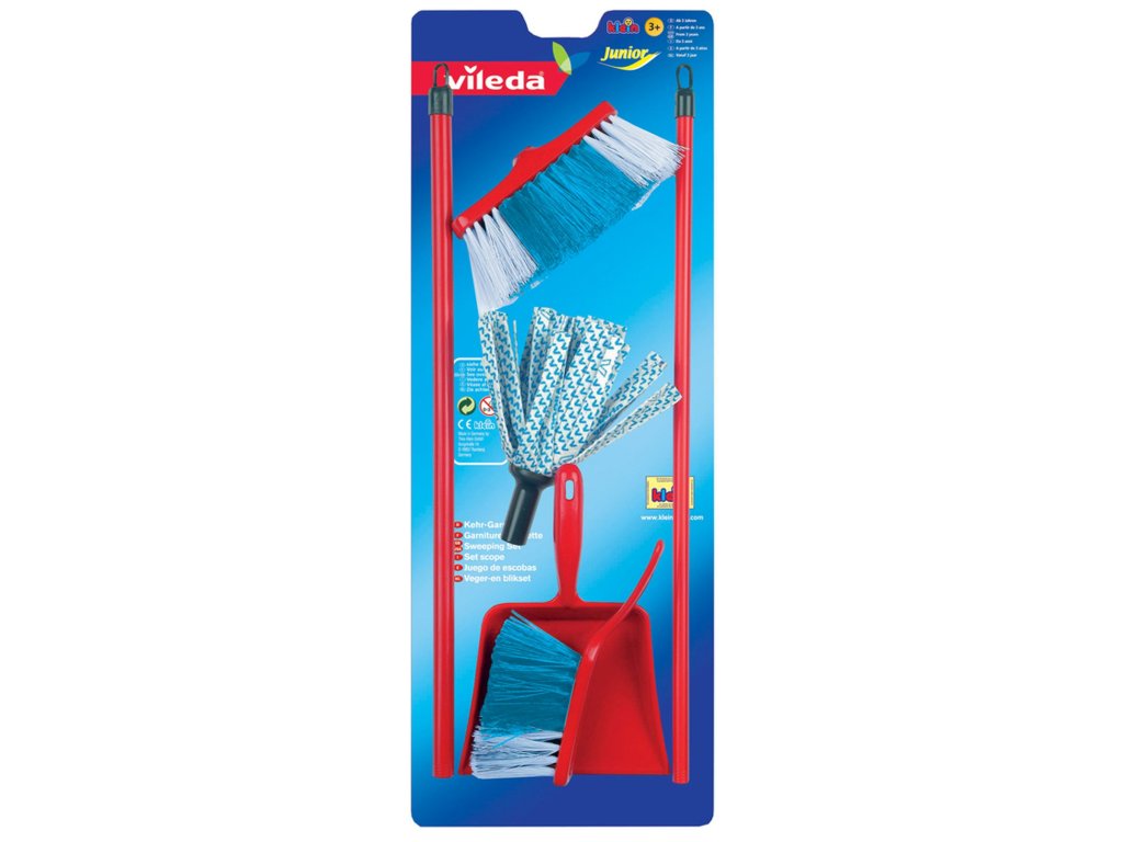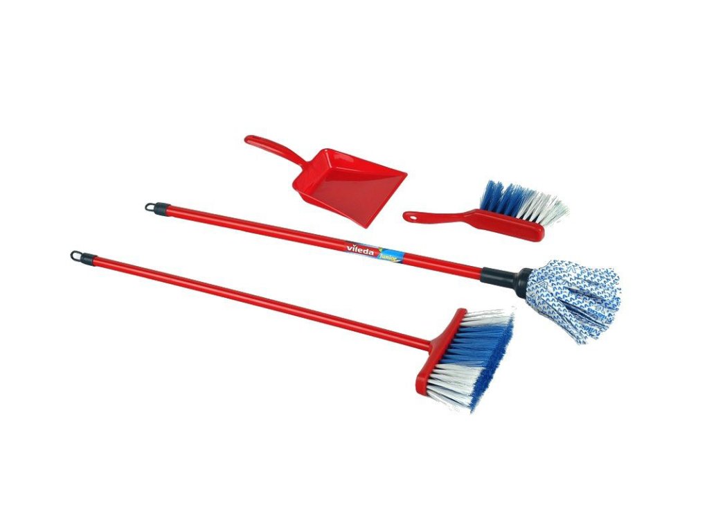 Sada koštěte, mopu, košťátka a lopatky značky Vileda. Vhodné pro děti od 3 let.