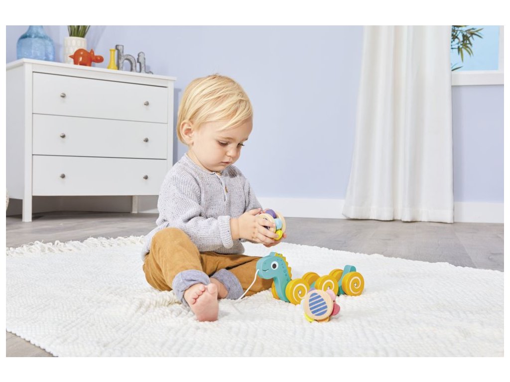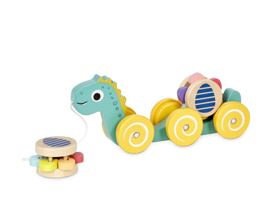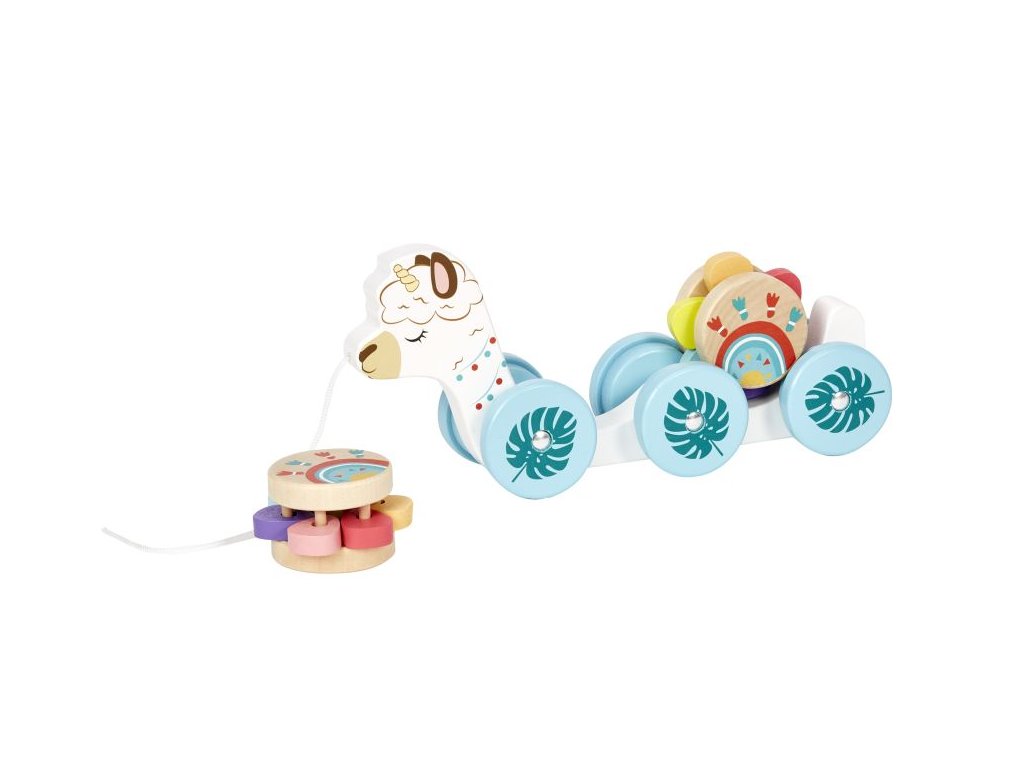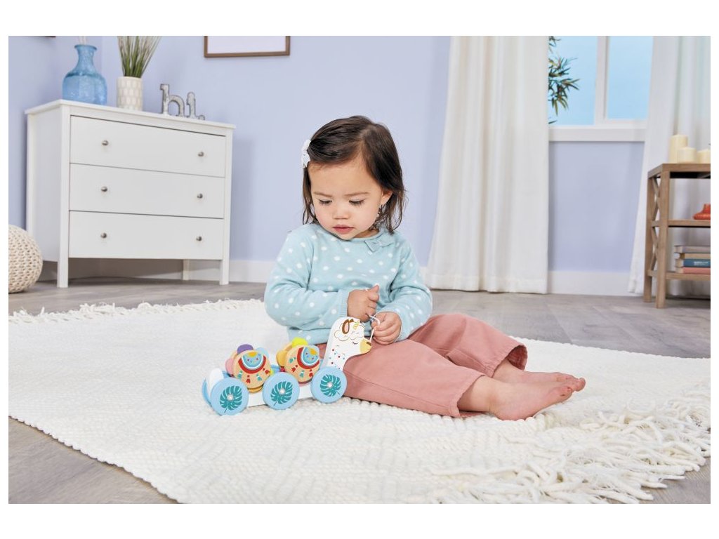 • 1 dřevěná tahací hračka s 6 funkčními kolečky a 2 koly na zádech
