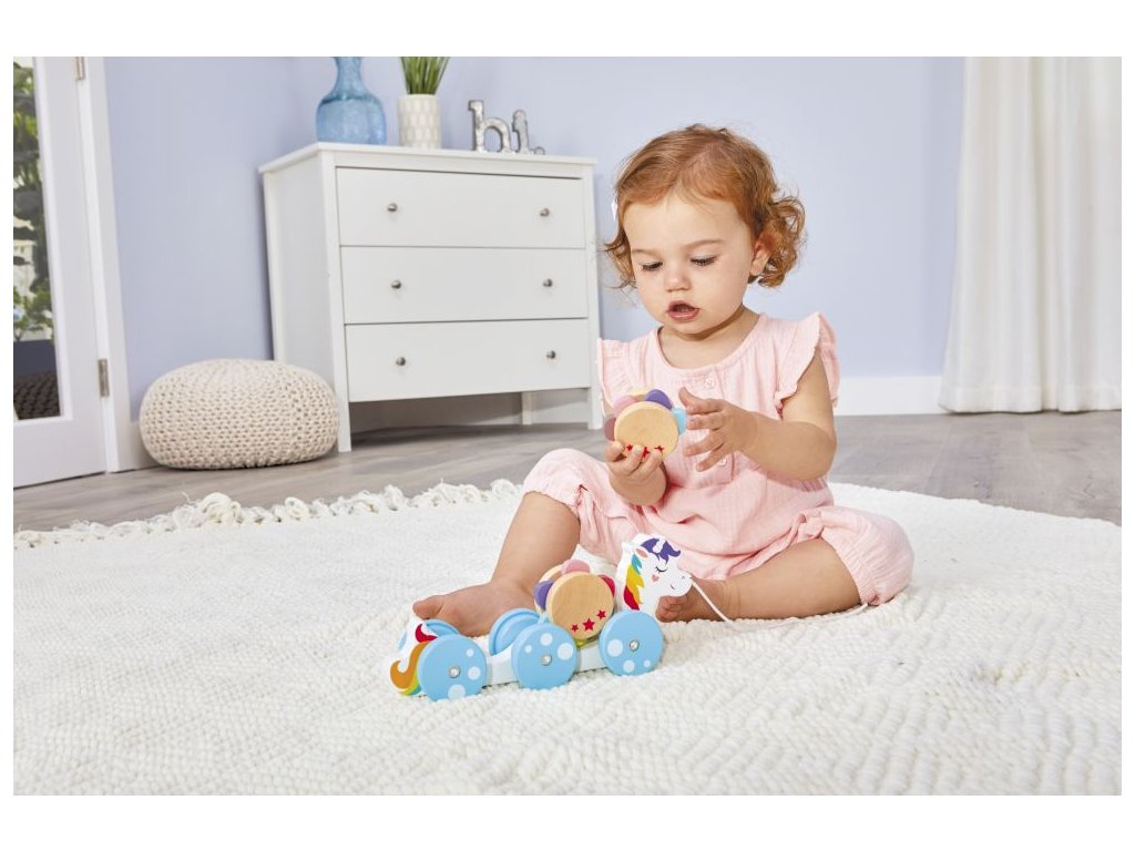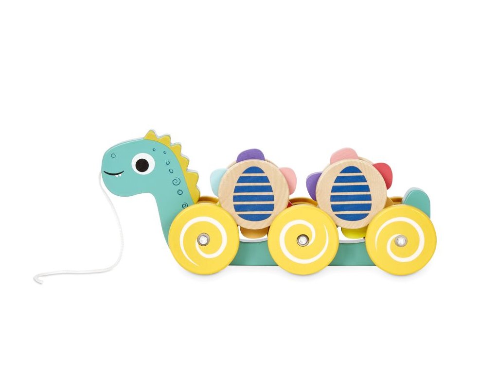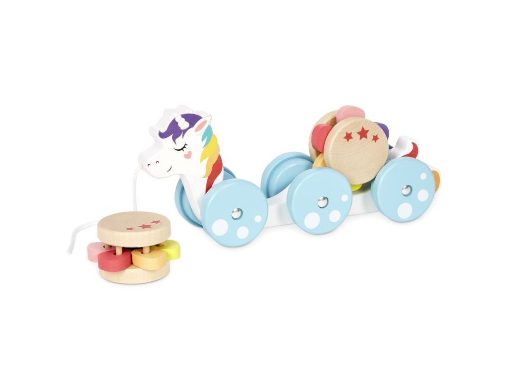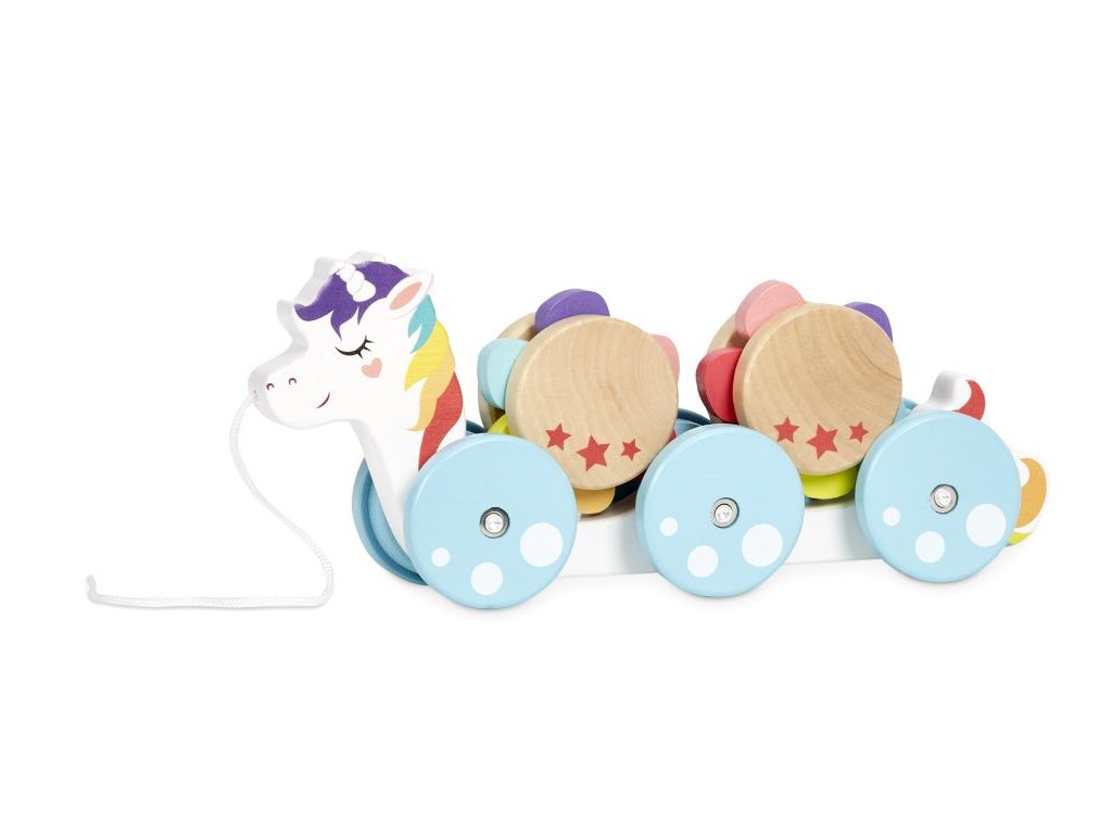 • 1 dřevěná tahací hračka s 6 funkčními kolečky a 2 koly na zádech