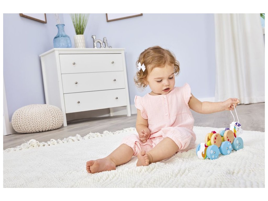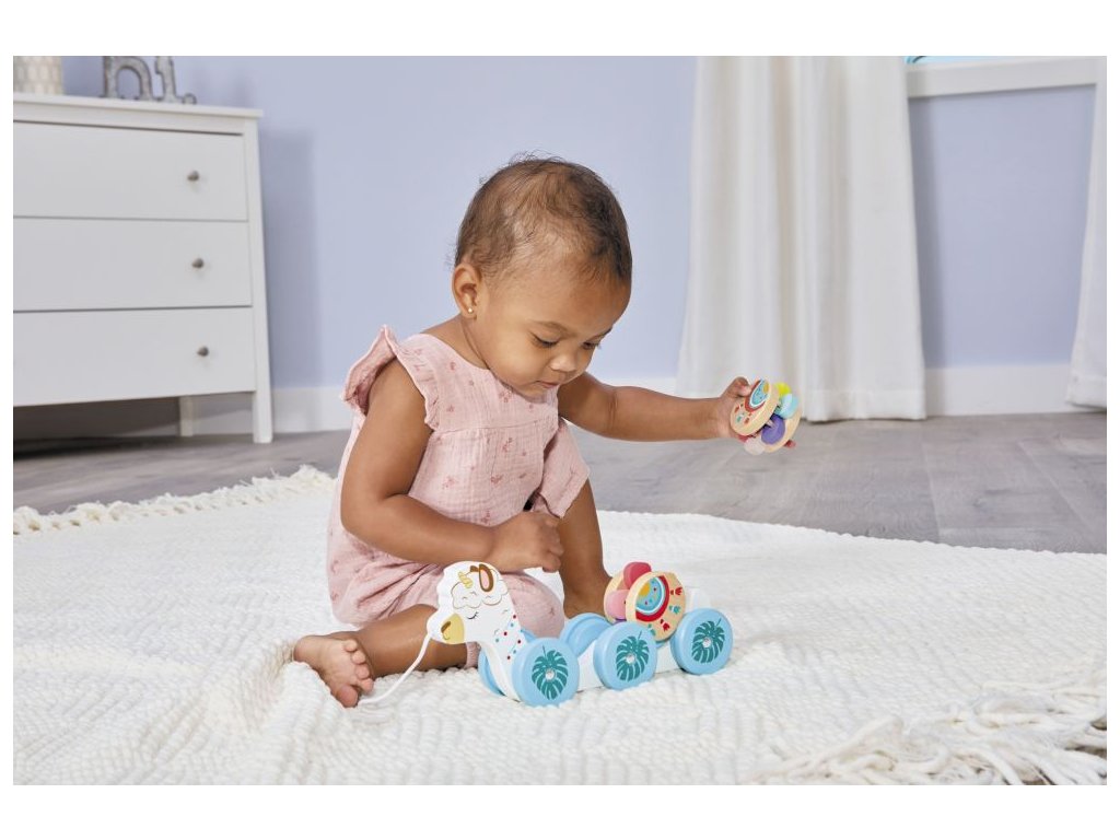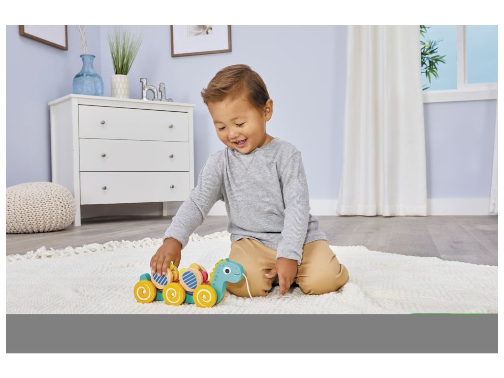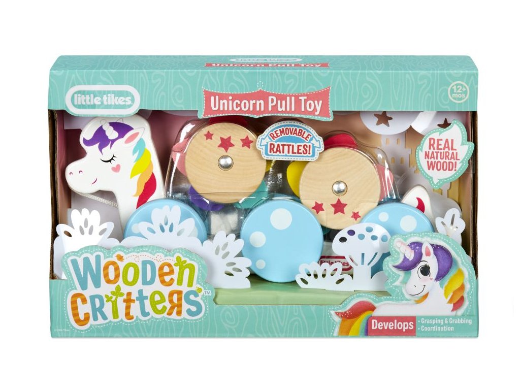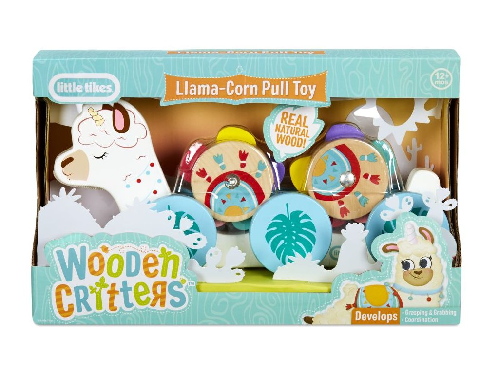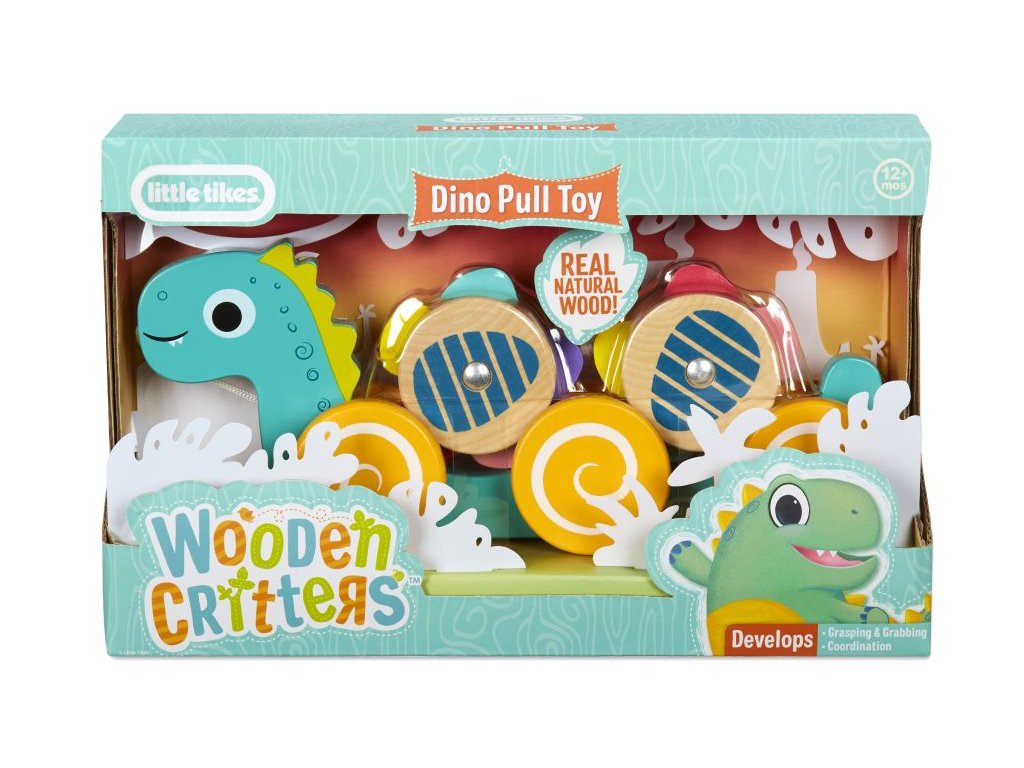 Little Tikes nabízí jedinečnou řadu dřevěných hraček pro batolata, které poskytují jednoduchou klasickou hru v kreativním designu. Zatáhněte za provázek a hračka pojede na šesti kolech dopředu. Každé zvířátko má na zádech dvě kola, která se pohybují, když hračka jede. Tato tahací hračka má vlastní jedinečný tvar a jasný barevný design.